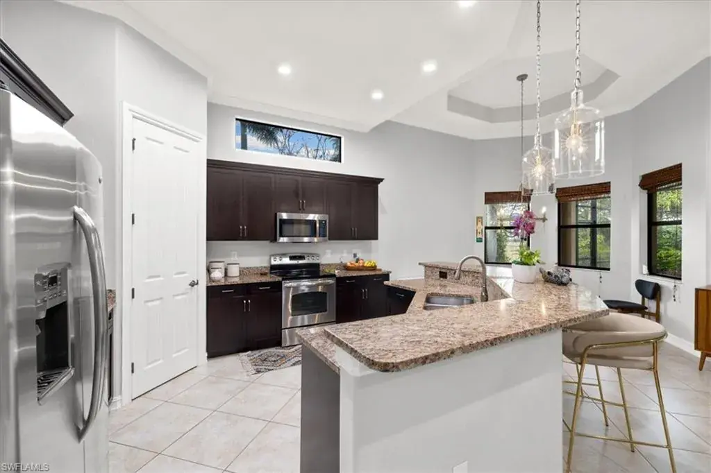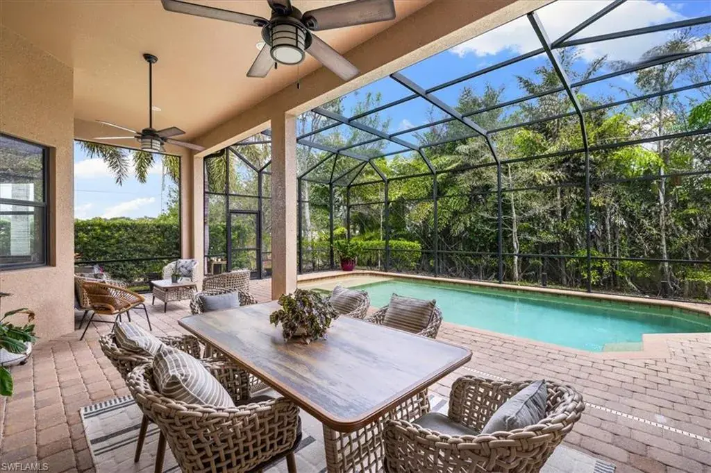 H9003. WELCOME TO SECOYA RESERVE – MOTIVATED SELLER, PRICED TO SELL. A gated community with just 57 homes built by Stock Development and located west of Livingston Road in North Naples. This home is the Montessa floor plan, with upgrades throughout, including 42″ cabinets in the kitchen, tile on the diagonal, stainless appliances, soaring tray & coffered ceilings, granite tops, and crown molding. Beautiful custom built-ins in the large open great room with a dazzling electric fireplace. The formal dining or den flex space is light & bright and is perfect for family meals or perfect for an Office space. Enjoy lounging on the expansive screened lanai or take a dip in the large heated pool with built in sun shelf. The perfect North Naples address with quick & easy access to I-75 and RSW Airport. Beautiful Secoya Reserve is within walking distance to the “A-Rated” Veterans Memorial Elementary and North Naples Middle schools and scheduled to open in August, 2023, the newest state-of-the-arts High School in Collier County. Close to Seed to Table, Upscale Shopping, Fine Dining, plus the beautiful Gulf beaches are all minutes away. Come fall in love with your new Home!! EXCELLENT LOCATION