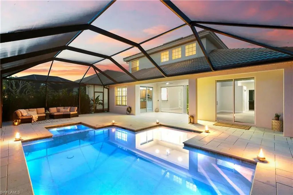 Wow, this 5 bedroom, 2.5 bath home just completed a new luxurious heated pool and spa. Over 2,500 sq. of living space, this 2 story home offers privacy and space. The master bedroom is on the main floor, along with one guest bedroom, while three more bedrooms are upstairs. Plus, this layout offers a RARE extended bedroom. Situated just off Livingston & Immokalee Rd, this home combines space and comfort with an unbeatable location. You can stroll to Seed to Table, and just a few minutes to Super Target, Super Walmart, Publix, and plenty of restaurants. Inside, you’ll find a cozy setup with a new front door and fresh paint inside and out (done in 2021) plus a newer water heater. Security-wise, you’re in good hands with a guard-gated entrance from 6 am to 10 pm. For families, it’s in a top-rated school zone, with the new Aubrey Rogers High School, North Naples Middle School, and Veterans Memorial Elementary nearby. The HOA fees are $995 every quarter which covers cable and internet. Plus, access to 3 pickleball and tennis courts, a playground, basketball court, fitness center, clubhouse, and heated community pool and spa.