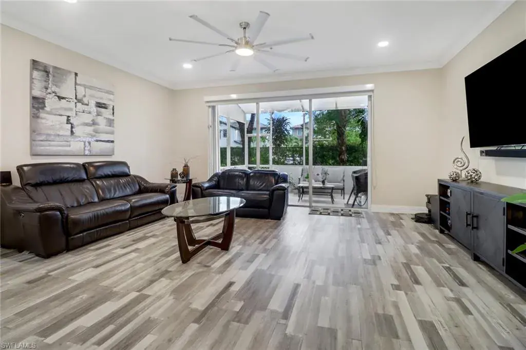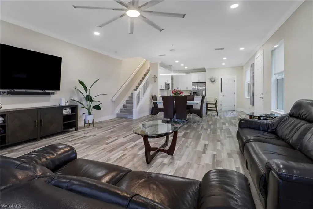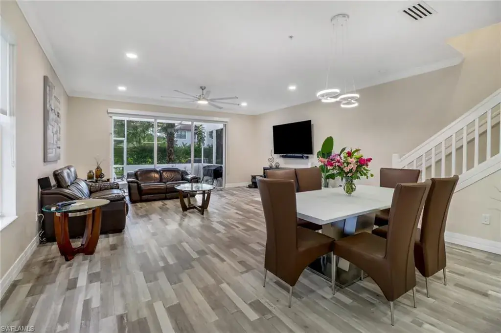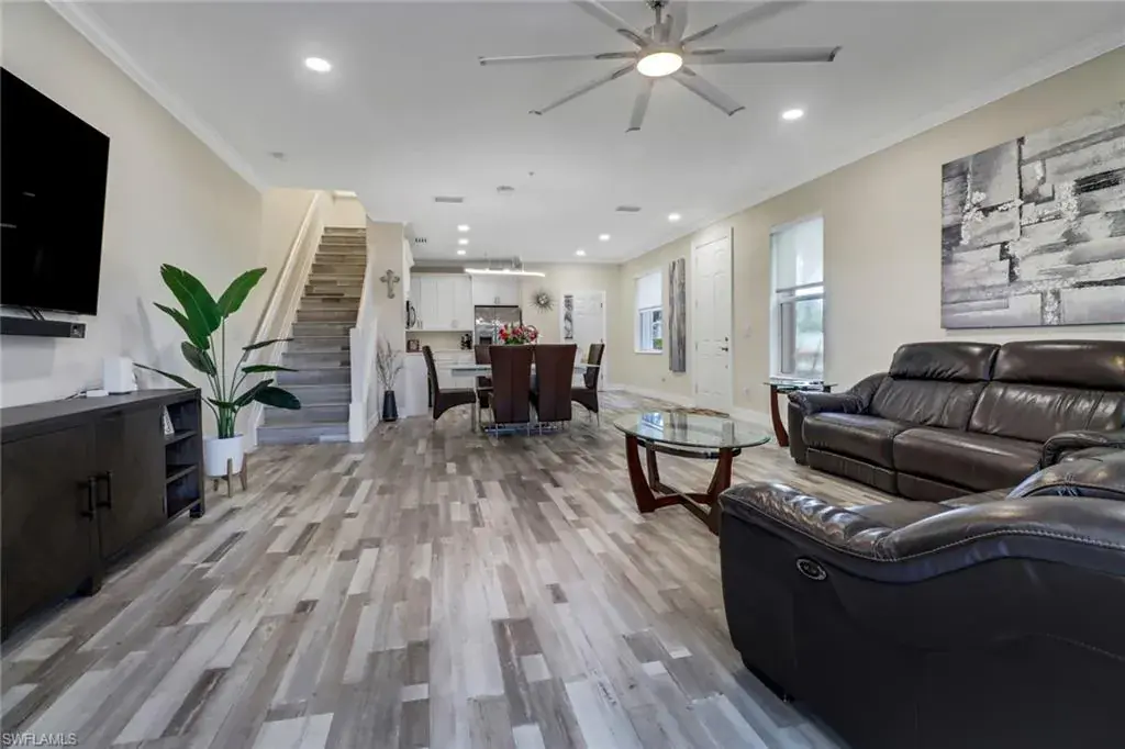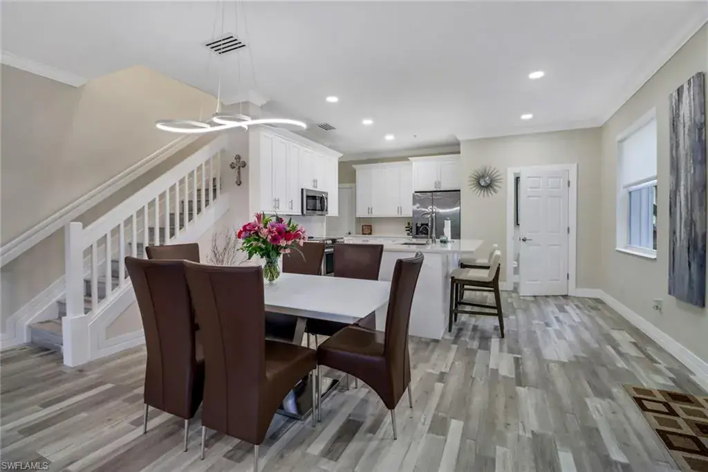 Step into this impeccably renovated 3-bedroom, 2.5-bathroom end unit townhouse, complete with an attached 2-car garage. Every detail exudes craftsmanship, from the stunning custom wood cabinetry gracing the kitchen & bathrooms to the elegant quartz countertops. Entertain guests effortlessly in the open-concept main living area, where sliding glass doors beckon to the screened lanai, perfect for serene outdoor relaxation. Upstairs, discover the main bedroom retreat, alongside 2 guest bedrooms & a convenient laundry area. Luxurious vinyl tile flooring guides your journey, complemented by porcelain tile in the bathrooms. Upgrades abound, from newer appliances to a modern A/C unit & sleek linear vents. Enjoy purified water with the under-sink reverse osmosis system & never worry about hot water with the tankless water heater. Stay secure & prepared with accordion hurricane shutters & a garage door opener equipped with a camera & remote access. On sunny days, a leisurely stroll to the community pool awaits just across the street. Nestled mere minutes from premier shopping, dining, schools, & world-class beaches, this remarkable home epitomizes refined living at its finest. Welcome home!