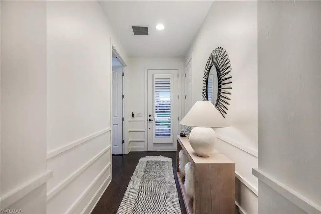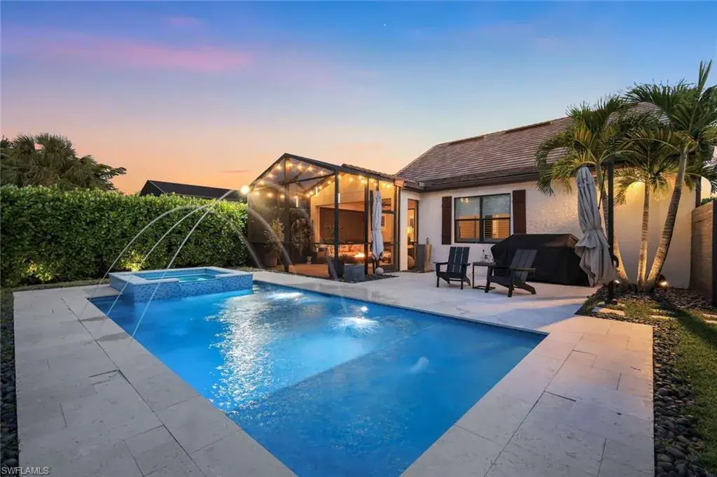 Nestled in tranquility, this stunning home offers an oasis of luxury. A lush yard surrounds a saltwater pool & spa, complemented by a screened porch & travertine deck, creating an outdoor haven. The fenced yard with custom lighting is a breathtaking evening view. Inside, discover a meticulously designed interior featuring wood flooring on the 1st floor. With 4BR, office, den & 3 BA this home provides ample space for family & guests. The chef’s kitchen boasts a large island, gas range, double oven & custom barn doors, exuding sophistication. A butler’s pantry w/wine cooler & walk-in pantry adds convenience. Upstairs, a large loft offers endless possibilities complemented by an enormous storage closet. Modern amenities include electric car charger, generator and 4-foot extended garage, combining convenience with sustainability. Strategically located near shopping, restaurants, entertainment & schools. Just 20 minutes from the beach & airport, it seamlessly blends coastal living with urban accessibility. Don’t miss the chance to own this meticulously crafted home, where every detail enhances your daily living experience. Welcome to a lifestyle of elegance, comfort & functionality.