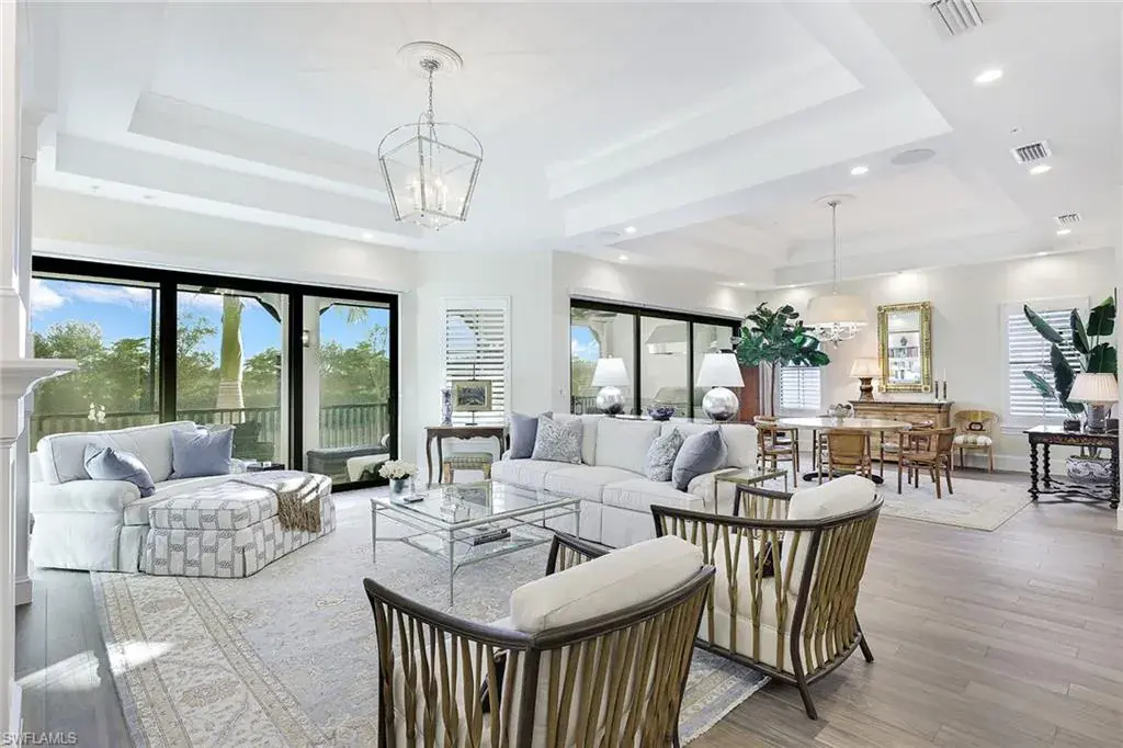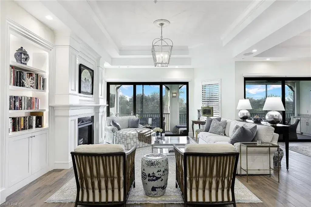 Luxurious second-floor coach home in Corsica lives like a single-family home and provides panoramic lake views with southeastern exposure. High-end finishes and designer touches can be found throughout including designer lighting fixtures. Custom closet system with dressing room, detailed millwork, butler’s pantry, Lutron shade system, private elevator, and chef’s kitchen with Sub-Zero appliances. Custom built-in cabinetry, 10-foot sliding glass doors, natural gas cooktop, exposed ceiling beams, and an expansive lanai finish this sophisticated residence. The award-winning Talis Park community offers several dining options, 2 pools, an attended fitness center, bocce ball, a full-service spa, dog park, walking trails, beach shuttle, social events, Har-Tru tennis courts, lap pool, and fire pits, and an award-winning golf course!