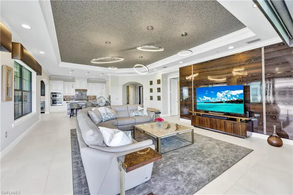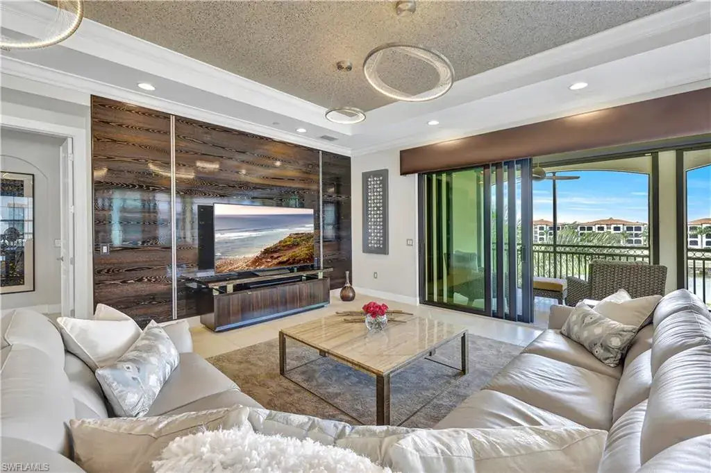 The best panoramic golf course views are from this 3rd floor luxury SW facing penthouse residence. Enjoy the unobstructed views of holes 2, 3 and 4. The luxuriously landscaped grounds, bridges, and golf course water features are very picturesque. The sunset views are pretty amazing too. The condo was professionally designed by Denise Ward Interiors and is being offered turnkey/furnished. Enter from your secured elevator through the foyer into the great room where you are immersed with beautiful custom finishes throughout. This 3BR+ den/3.5 BA condo features upgraded granite, gas cook top, large neutral tile flooring, trash compactor, wine/beverage refrigerator, hurricane shutters, custom closet, plantation shutters, and trash chute. There are 2 assigned garage parking spots with an area for a golf cart and additional private extra-large storage space. The Carrara subdivision has its own private pool, spa and grills. The condo is only a short walk, bike or golf cart ride to the clubhouse which has several dining options, golf, resort pool, Pilates/Yoga Studio, Fitness Center & Esprit Spa, beach shuttle, the sports complex with lap pool, pickle ball, tennis bocce and more.