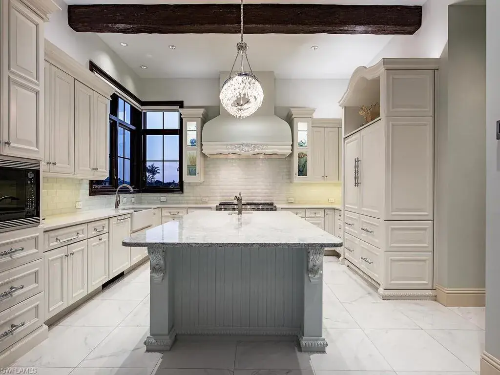This home features a 700 plus bottle climate-controlled wine cellar and a tasting room. A chef’s delight, the state-of-the-art kitchen features top-of-the-line appliances, custom cabinetry, and a spacious island perfect for entertaining.