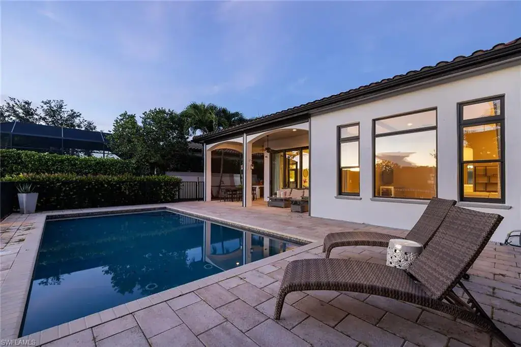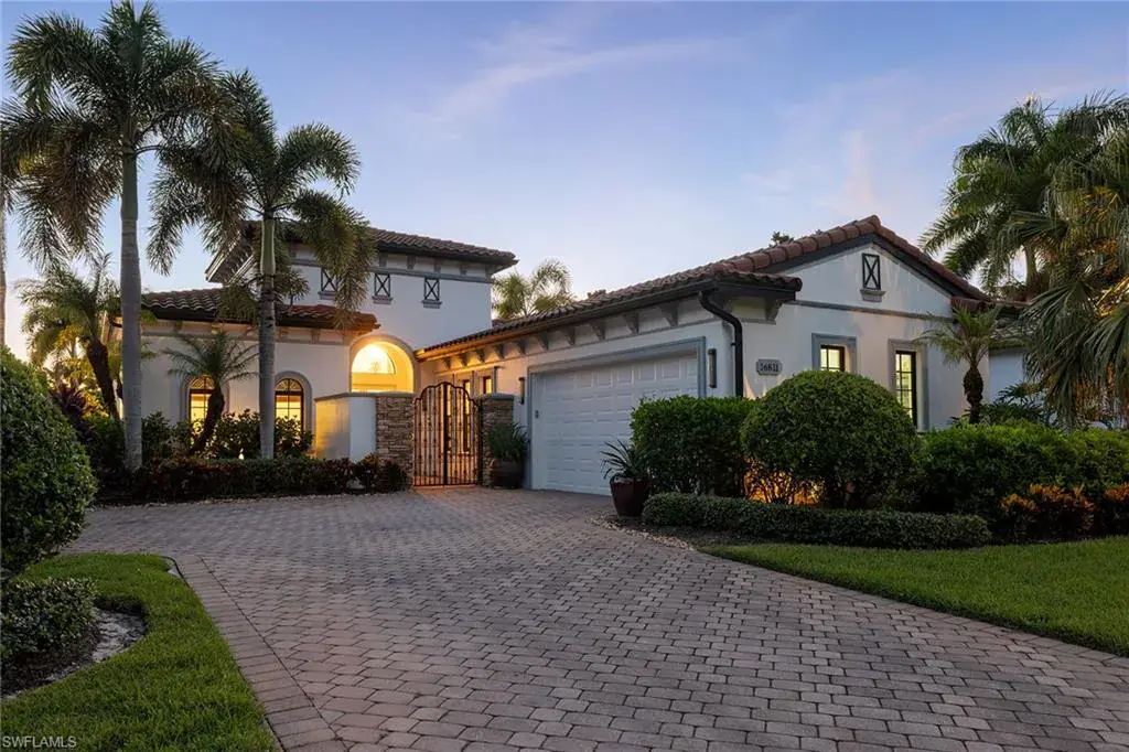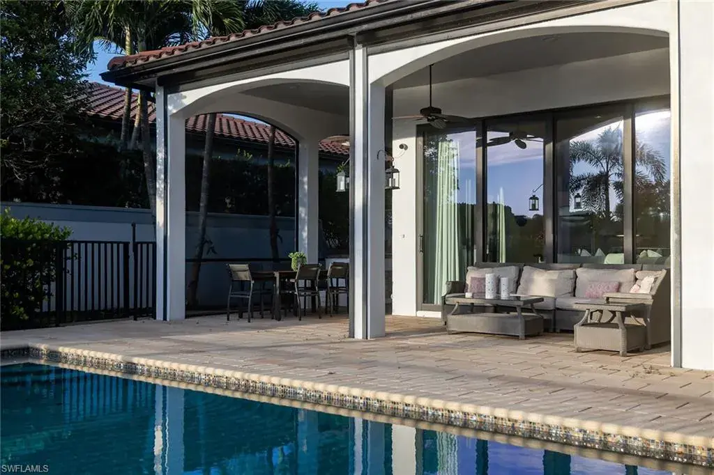 Immediate golf membership opportunity available! Imagine as you enter this home with glimpses of an intimate courtyard through floor-to-ceiling glass and wide spaces leading into an open great room area. The great room is bathed in natural light, thanks to the dramatic high ceilings and sliding pocket doors that open to your own outdoor oasis. It’s the ideal spot for unwinding after a long day or hosting unforgettable gatherings. Enjoy a refreshing dip in the pool or the serene western water views and witness the magnificent sunsets this home has to offer. The outdoor kitchen and dining area are just waiting for your culinary adventures. For those special occasions, there is a formal dining room that’s ideal for family get-togethers. And if you need a private space to work from home, you’ll love the home office that overlooks the lush gardens of the courtyard. Additional features include impact windows and doors, newly installed LVP flooring, gas cooking, remote-controlled screens in the outdoor living area and more! And let’s not forget about the convenience factor – you’ll be just a stone’s throw from shopping and dining. Have it in the award-winning community of Mediterra. Enjoy your toes in the sand and golden sunsets at Mediterra’s fully renovated private Beach Club along the Gulf. Imagine arriving to have your car valet-parked and lounge chairs and umbrellas waiting for your arrival or set up upon your request. With 10,000 square feet of space, the upper level offers indoor and alfresco dining, a full bar, swimming pool along with lockers and dressing areas for changing. Spend the day and enjoy dinner while watching the sunset in the distance. In the award-winning community of Mediterra, where you can have it all with 36 holes of Tom Fazio championship golf, Har-Tru tennis courts, pickleball, bocce and a private beach club!