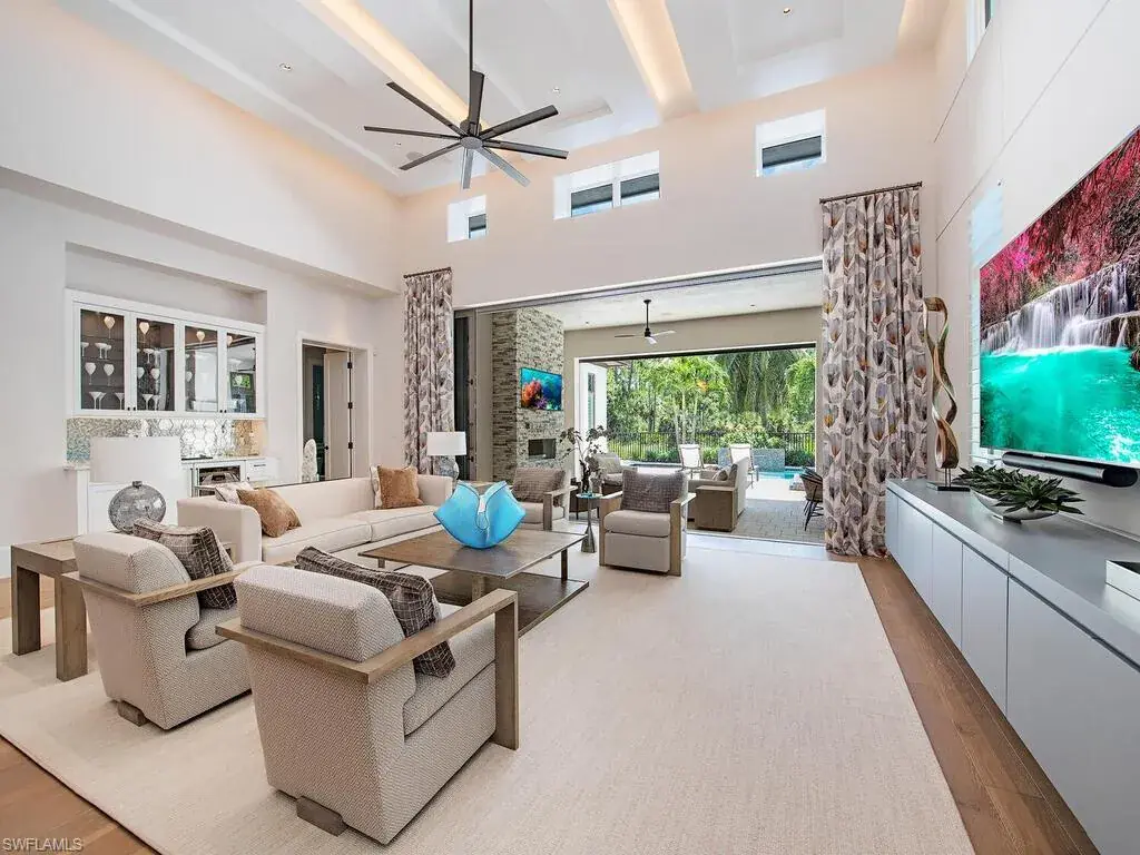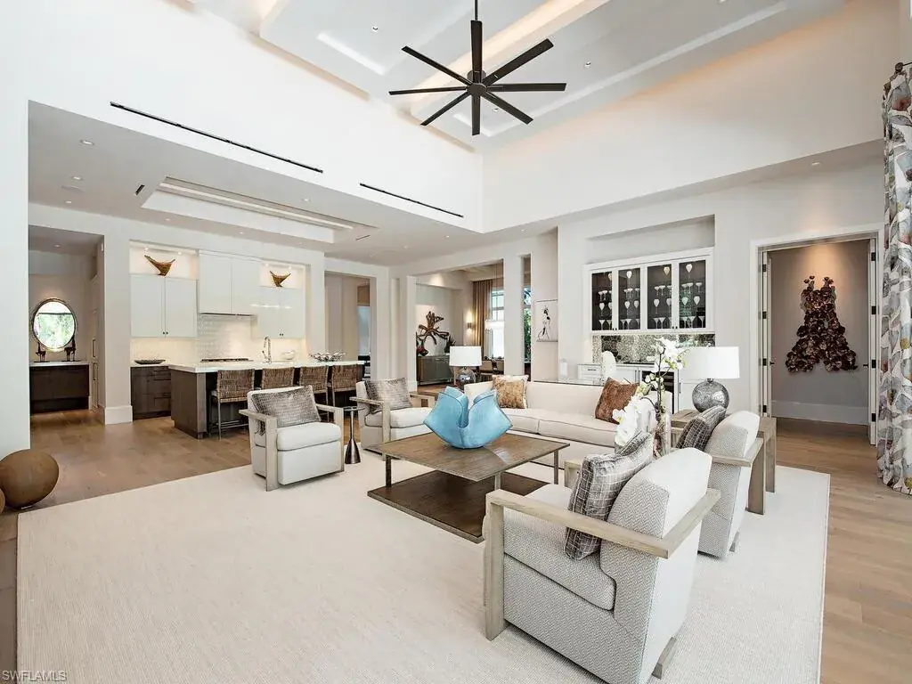 Stunning architecture and exquisite modern landscaping welcome you to this astounding estate built in 2020. Crisp, clean lines accentuate the coastal contemporary design throughout the interior & exterior of the home. Volume ceilings in the grand foyer lead into a spacious open floorplan flowing effortlessly between the formal living room, dining room & expansive kitchen. Light wood floors enhance the abundant natural light flowing throughout. A large center island creates a gathering place in the kitchen with top-of-the-line built in appliances encapsulated in white cabinetry. The primary suite welcomes relaxation with a delightful master bath complete with his & her vanities, soaking tub & gorgeous shower. An intimate home office is located just off the main living area. The second story loft is the ideal gathering place for guests. A delightful outdoor gas fireplace & summer kitchen extend entertaining opportunities into a private outdoor oasis. The sparkling spillover spa & pool invite you to soak up the sun amidst lush landscaping. Mediterra provides an abundance of amenities including two Tom Fazio designed golf courses, sports club & exclusive members only Beach Club.