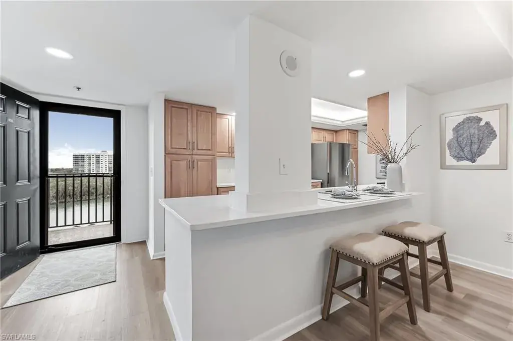 I’M BEAUTIFUL INSIDE! Renovated, Bright, INCREDIBLE VIEWS in a building that has PASSED ALL STRUCTURAL and RESERVE Requirements and no further Special Assessments in sight! Brand new HVAC system in unit (6.25) This building has the highest Elevation on Bluebill Pointe! Substantial updates have just been completed including the re-flooring of the main living space, kitchen, & lanai with luxury vinyl plank, the opening of the kitchen to the living space, and the addition of a breakfast bar. New Quartzite countertops in kitchen and baths, brand new vanities, sinks, mirrors, fixtures in both baths. Unit has been painted from head to toe. Condo is in perfect shape! The perfect escape from the snow and ice, this Surf Colony condo will melt your heart and troubles away. Relax as you gaze at the stunning 6th floor views of Turkey Bay, Delnor-Wiggins State Park and the Gulf. Walk to the beach, tennis, Pickleball or marina and live your best Life! END OF 2025 SEASON Pricing!! Interest rates have dropped into the mid sixes, Virtual showings Available!
