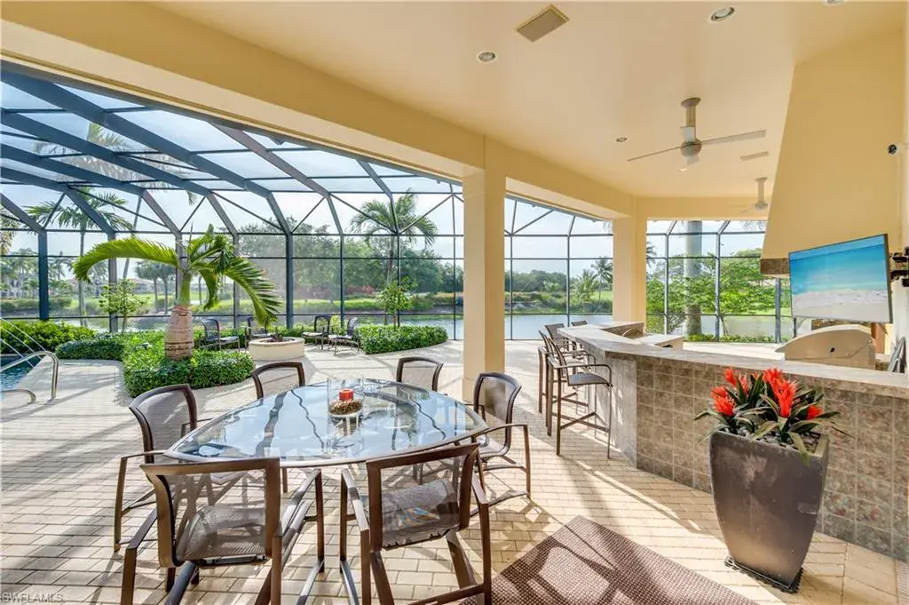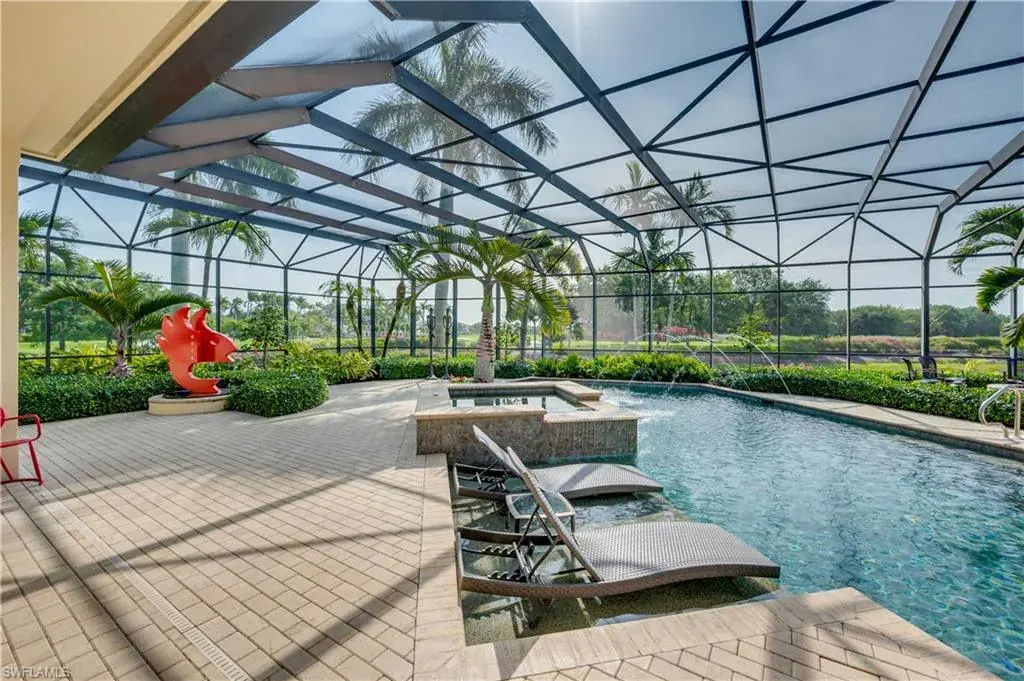 STUNNING Contemporary estate on one of the best WATERFRONT lots in Pelican Marsh! SELLER IS READY TO SELL! Poured concrete walls. Over 236 ft. of water frontage & an enormous screened lanai to enjoy every bit of the view! Oversize master suite offers 2 large walk-in closets, an En-suite exercise room or 2nd office with sets of French doors to the FABULOUS expansive WATERFRONT screened lanai offering an outdoor kitchen w/TV & fridge, gas fire pit, resort style 42X18 pool with fountains & sun shelf. Open kitchen features double full size Sub-Zero refrigerator & freezer, granite center island with sink, lighted glass front cabinets & deep walk-in pantry. AC units feature NEW thermostats & mold fighting blue lights, whole house “Water Cop” leak detection, NEW Roof revitalization & “no clean” sealant with 5 year warranty. Guest suite wing features 2 en-suite bedrooms, sitting area & French doors to a special guest patio on the WATERFRONT screened lanai. Modern Family room wall system with gas fireplace & specialty lighting. 3 car garage with AC, extra storage & built-in work station. A FULL Home Warranty has kept the appliances & all AC units in top condition AND it’s transferable!