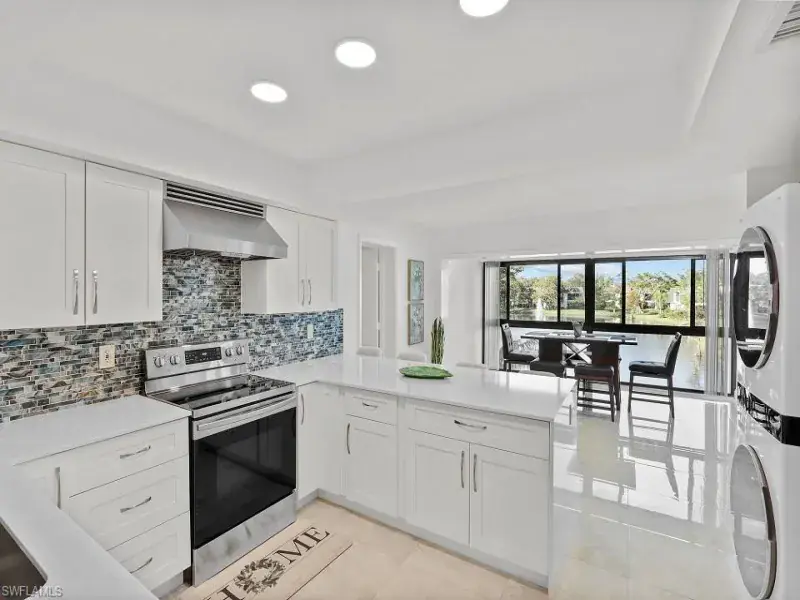 Totally remodeled condo offers 3 bedroom & 3 bath. It features new tile & laminate wood floor throughout, open floor plan, brand new kitchen & white counters with top of the line appliances. Dog friendly community. Located on the top floor light and bright with large windows and sparkling serene lake with fountain views! Great room opens to large dining area and three generously appointed bedrooms-2 w/a pocket door. Close to shopping, restaurants, movies and more! Featuring fresh paint, this home lives clean and spacious. Community is gated at night and it is only minutes from the sugar-white beaches of the Gulf of Mexico are and is walking distance to shopping and dining.