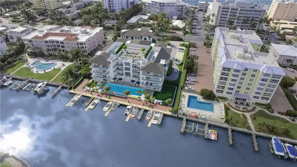 Welcome to La Perle! A rare commodity in a treasured & special location fronting Hurricane Harbor & capturing sensational views of the Gulf. With only 13 units, La Perle is an intimate community centrally located. The shopping & dining districts of 5th Ave. S. & historic 3rd St. S. lie a short distance to the south. Venetian Village, Waterside Shops & Mercato are to the north. At night, enjoy shimmering lights on the waters; during the day, stroll to Lowdermilk Park or opt to join the private Moorings Beach Club. On the grounds, there is a waterside putting green & oversized geothermal heated pool. Catch some sun by going out on your boat parked in one of the 11 available slips. After that, head to the roof to watch sunset. Grill at the rear outdoor kitchen cabana (or relax and watch tv in the other cabana) or take a short jaunt to one of the numerous nearby Naples dining options. All residences are custom crafted with top of the line features including Wolf & Sub-Zero appliances, Legno Bastone flooring, and sublime fixtures. Constructed with the best craftsmanship & features to endure time and elements. Special & unique. There are 3 indoor and 1 outdoor parking spaces. New & rare.