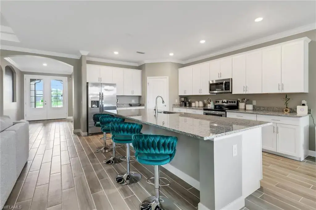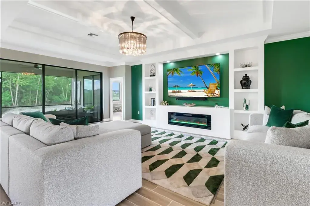 Opulence and tranquility meet in this custom-built, coveted Summerville II model home on an oversized cul-de-sac lot with lake views in Valencia Golf and Country Club. All-new, eye-catching landscaping surrounds the residence, offering a taste of the luxury found within. The interior features a thoughtful layout designed with privacy in mind, with each of the three spacious bedrooms strategically positioned in separate corners of the house. This unique arrangement ensures that everyone enjoys their own private retreat, complete with a full bathroom. Ceramic tile wood plank flooring runs throughout the entire home, enhancing the contemporary design and offering durability with timeless style, while stunning ceiling accents add to the overall grandeur. Another reason this model is so sought-after is the expansive great room layout, where the gourmet kitchen, dining, and living areas flow seamlessly together, providing an ideal space for both relaxed living and entertaining. A built-in electric fireplace in the great room adds a touch of coziness to the modern aesthetic, creating a warm and inviting atmosphere. The versatile den/office/flex space adds even more functionality to this floor plan. The sprawling primary suite offers private access to the lanai, two generous walk-in closets, and dual vanities in the ensuite bath. The 3-car garage features an epoxy coat finish. There is also room for a pool, making it easy to elevate your outdoor living experience even further. Don’t miss this opportunity to own a piece of paradise in Valencia Golf and Country Club.