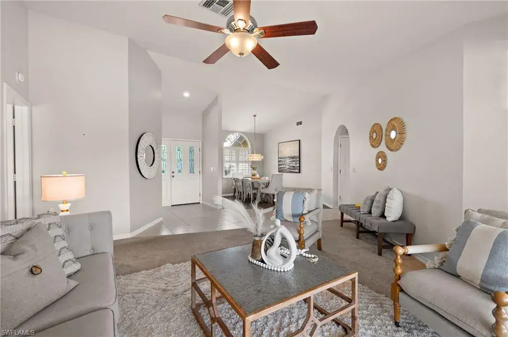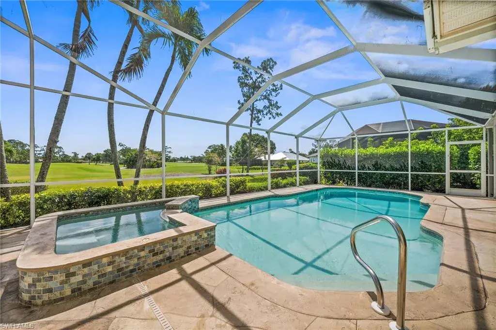 Welcome home! Beautiful move-in ready pool home in Imperial Golf Estates, offering picturesque golf course views. Nestled on a private cul-de-sac, this residence presents an inviting floor plan with vaulted ceilings, split bedrooms and separate formal living room and family rooms for flexible living options. Step outside to the expansive lanai area, featuring a generous covered space and an inviting pool and spa that overlook the 4th and 5th fairways. This home offers the perfect blend of comfort and elegance, creating the perfect setting for both relaxation and entertainment. Located in an established gated community with larger lots, low HOA fees, and two separate entrances providing easy access from Livingston Road and US 41. Prime North Naples location puts you close to beaches, shopping, and dining. Don’t miss the opportunity to experience this home and community for yourself! Furniture negotiable.