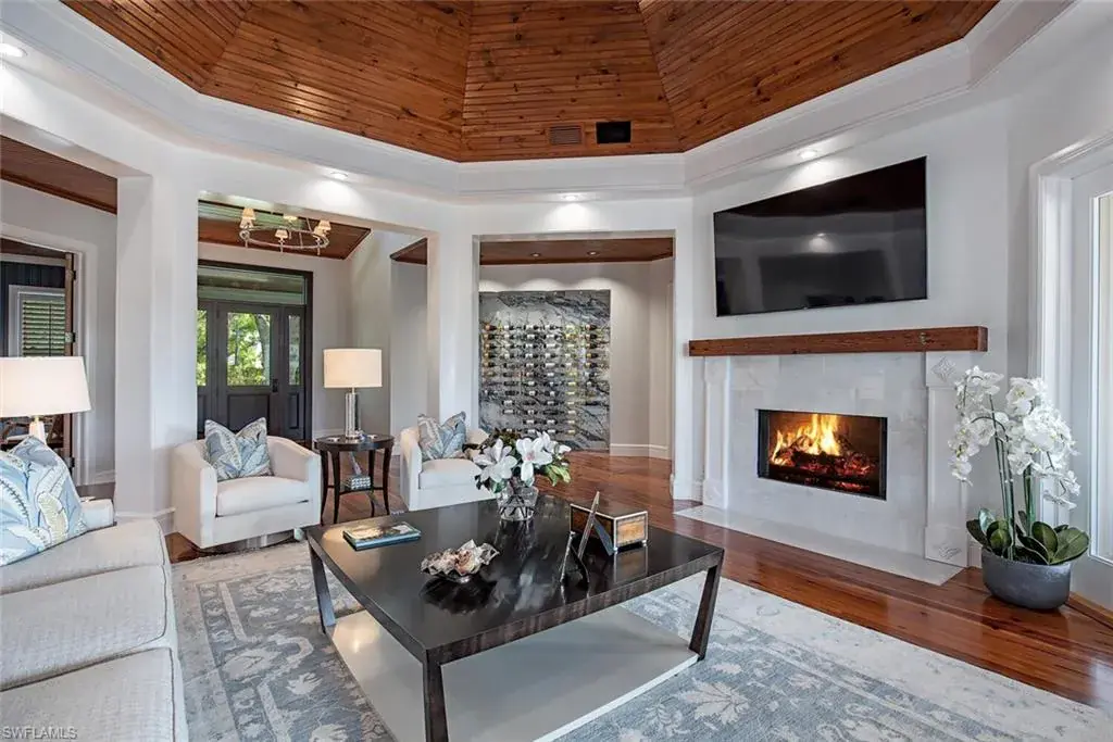 Boater’s paradise meets luxury retreat in Aqualane Shores. Remodeled in 2022 with open water views over Naples Bay and ideal southern exposure. This Old Florida style home boasts 210’ on water. There is a 40’ floating dock, a 90’ stationary Trex dock, and Tiki bar. This luxury home offers 5 bedrooms with ensuite baths, office, large utility room with “mom’s” office, huge pantry, multiple storage areas, 2 car garage with lift for 3rd vehicle, and airconditioned storage area. The kitchen is open to the family room and is equipped with Viking range, Sub-Zero fridge, built in Meile coffee maker, and brand new cabinets. Quality exudes from the rich 5” reclaimed heart pine floors, solid custom Brazilian wood doors, two fireplaces, and updated Sonos and A/V system. Lounge on the oversized lanai with roll down screens and enjoy views of Naples Bay. This property is in walking distance to 3rd Street shops, restaurants, and the beach. Impeccably finished with custom high-end furnishings that complete this oasis and are negotiable. This is waterfront living at its best in Naples.