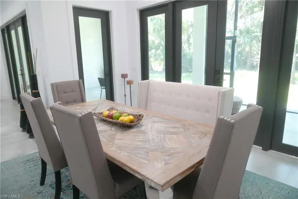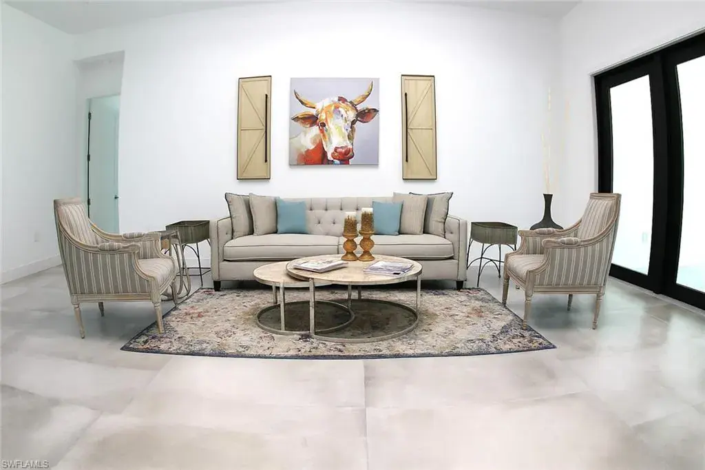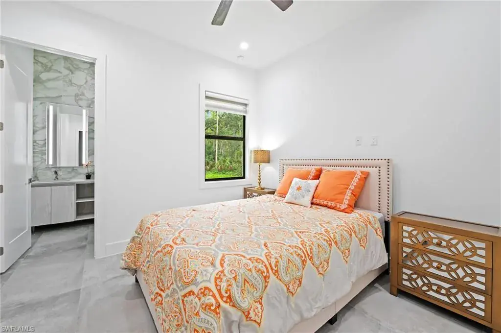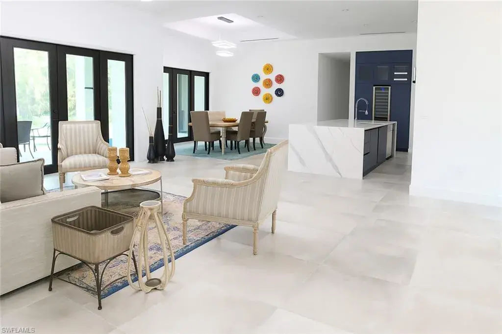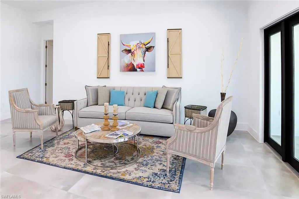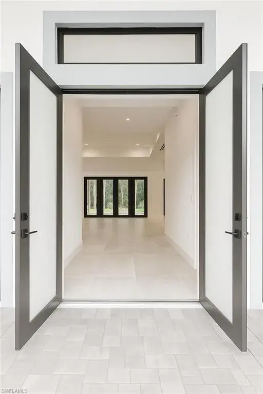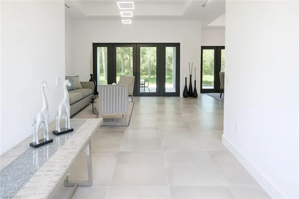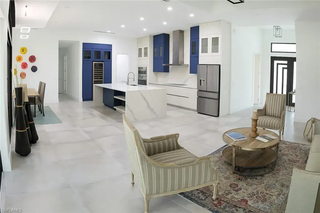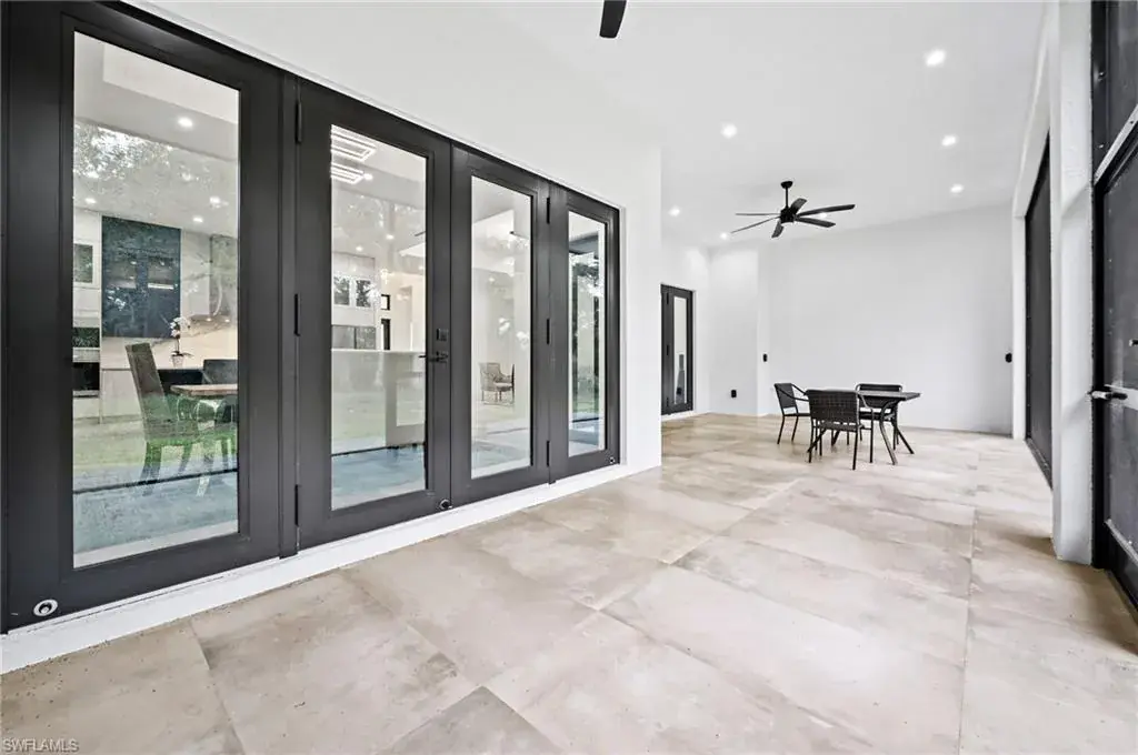 Soaring high ceilings and custom details. Gourmet kitchen with custom cabinetry, granite island, and built-in wine cooler. Private laundry room for added convenience. Impact windows and doors for safety and energy efficiency. Relaxing screened lanai with serene views. Paved driveway with plenty of parking.