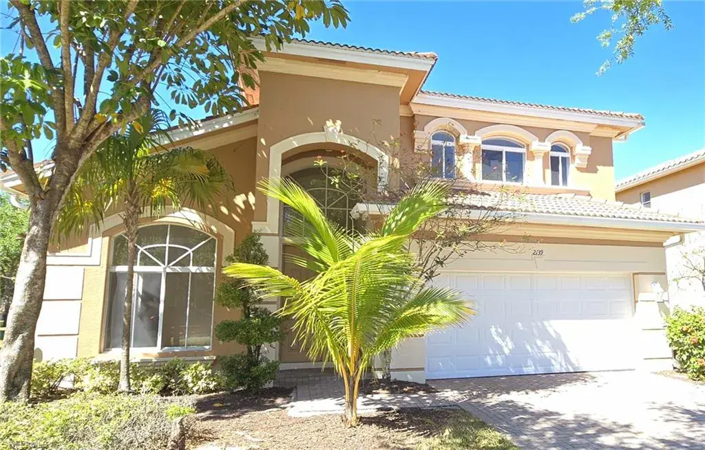 Welcome to paradise at an outstanding, affordable price! This grandiose home has a prime location overlooking the golf course in the private-gated Valencia Golf and Country Club, offering resort-style amenities including a clubhouse, heated pool, theater, library, billiards room, park, tennis courts, dog park, fitness center, and private security gate guard. With soaring vaulted ceilings and a modern open-concept design, this home features 4 large bedrooms and 3 modern bathrooms, including a spacious first-floor master and a second master suite upstairs with its own private bathroom, perfect for extra privacy or guests. The grand master bathroom includes a jetted tub, dual sinks, spacious shower, and oversized closet. The large kitchen shines with freshly painted cabinets, a large island, and breakfast bar. Enjoy natural sunlight through large windows and relax on your private patio with stunning Naples sunset views over the golf course. Conveniently located short distance top-rated schools, shops, restaurants, and the newly developed Big Corkscrew Island Regional Park with sports fields, a waterpark, and more. This is your dream home for a luxurious, affordable lifestyle!