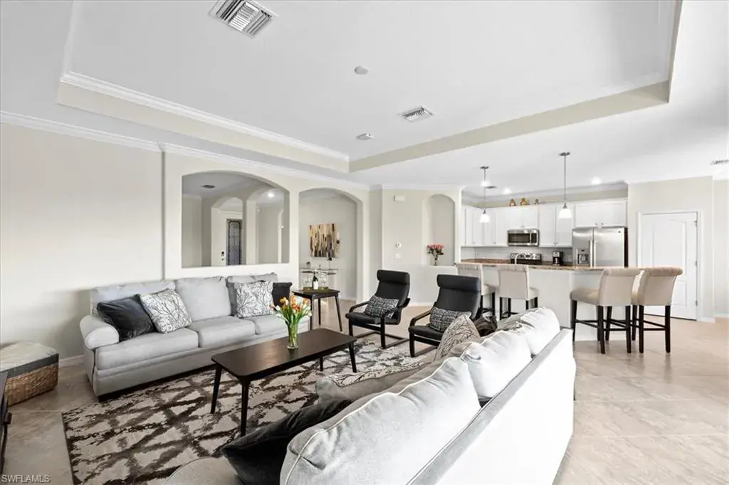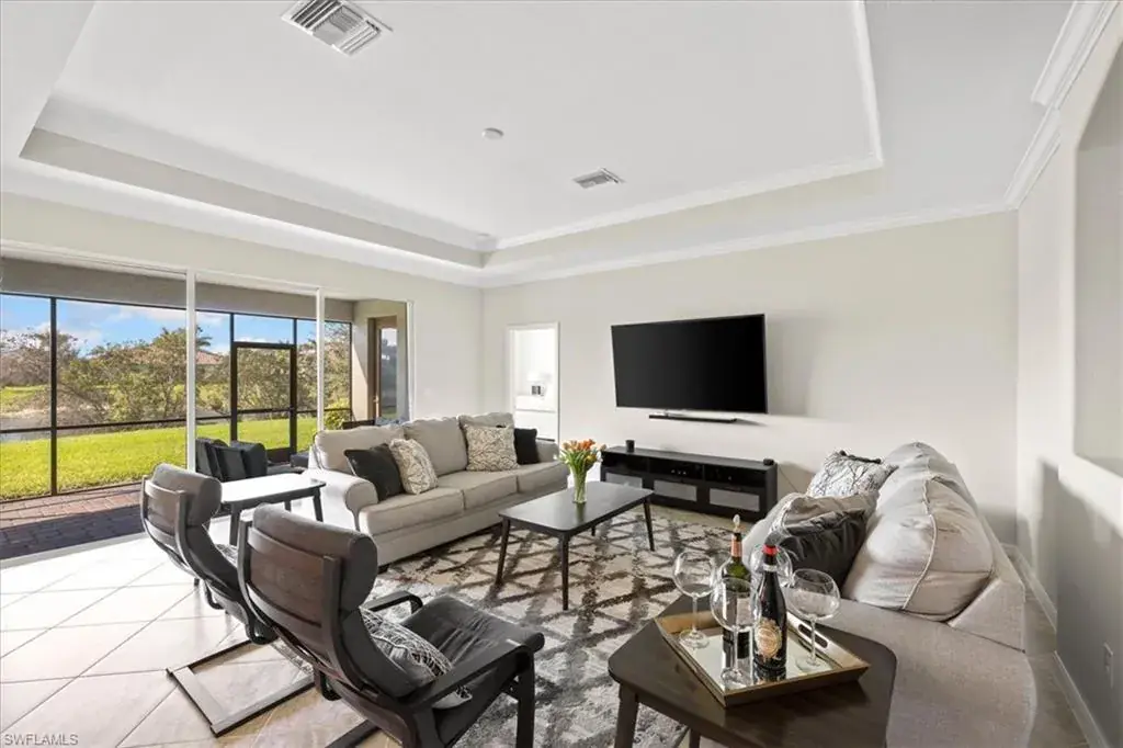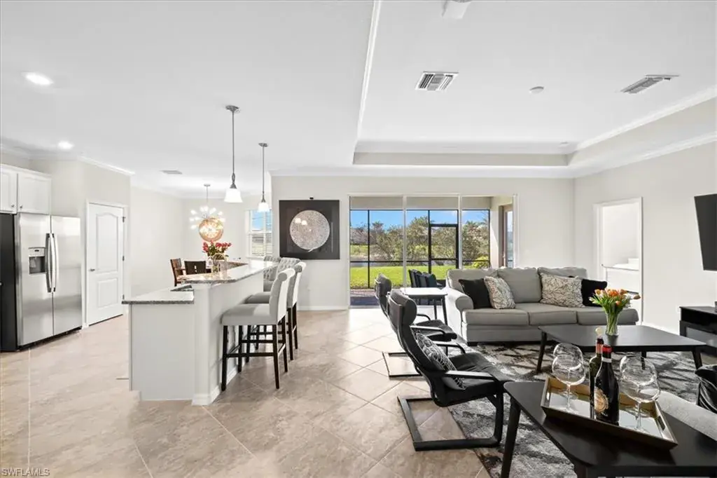Beautiful and meticulously maintained single family home with sunset lake views! This late-2019 built home feels brand new and offers over 2200sqft of living space. Great Value, as it comes move-in ready and TURNKEY-Furnished! The Princeton floor plan offers a spacious layout with plenty of natural light, high ceilings and room to build a pool. Enjoy western exposure lake views while BBQ-ing on your private lanai. Attractive tile-roofing, front stone work, white kitchen with stainless steel GE appliances, crown molding, tray ceilings, large walk-in closet, oversize shower with a separate bathtub, smart home security, large diagonal tile, and epoxy garage floors are just a few highlights of this home. With a 3-car garage you finally have enough storage space! This upscale subdivision (The Groves) was designed for single family homes to have more privacy, each lot is oversize (.24acres). The home has beautiful curb appeal, lush landscaping and Hibiscus trees. Enjoy the most incredible amenities, including 3 Pools, 2 Spas, Basketball and Tennis, 3 Playgrounds, Social Clubhouse, Fitness Center with Kids Play Area, Full Catering Kitchen & Bar, Sand Volleyball, Fishing Pier and more!