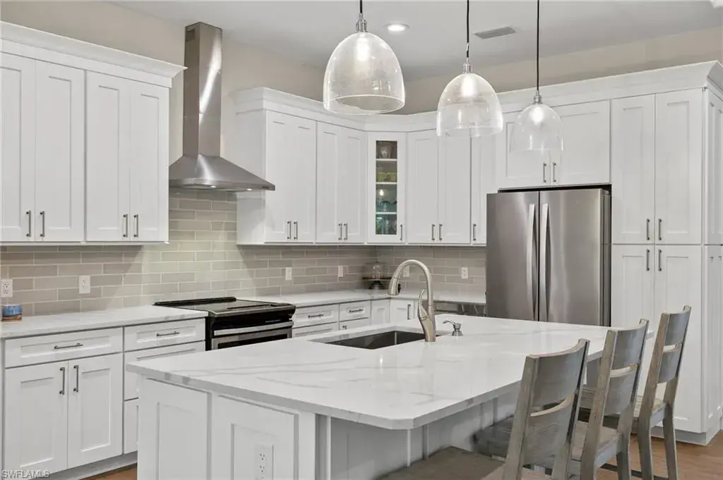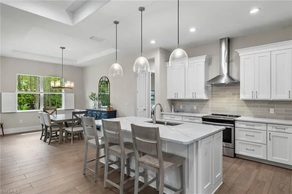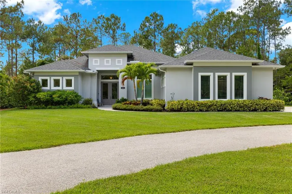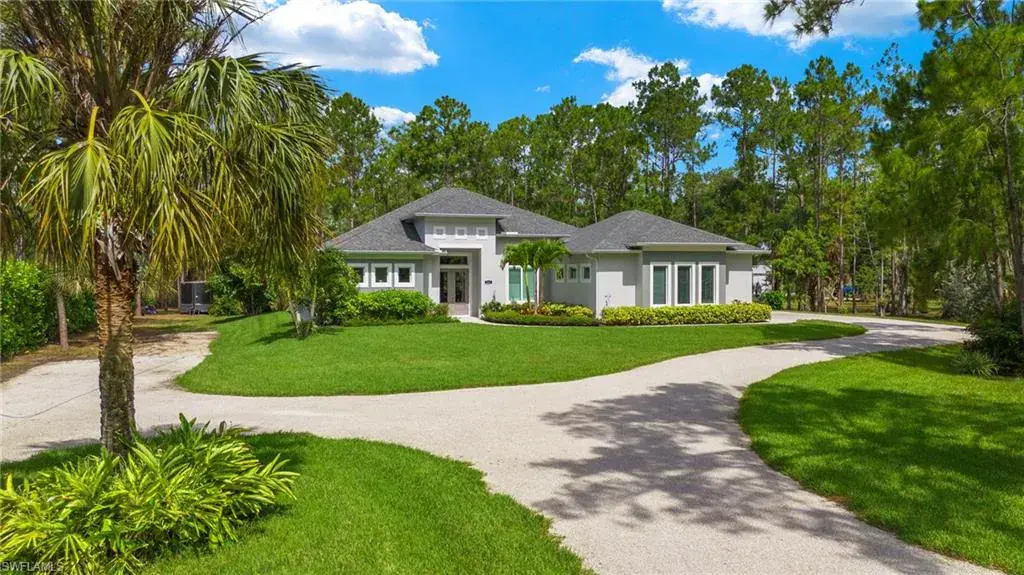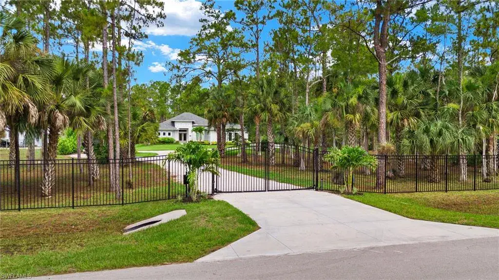 Escape to privacy on 2.46 acres in Naples! This modern 3 Bedroom +Office home has a wonderful layout w/ tiled wide plank wood floors thru-out, a chef’s dream gourmet kitchen & spacious dining room. Private master suite features his & her closets + oversized luxurious walk-in shower. Enjoy a screened lanai w/ shellstone tile & beautiful outdoor kitchen overlooking nature, perfect for entertaining. Private gated entry, mature landscaping, oversized garage for ample storage, & NO HOA! Just minutes from shopping/dining. Located in a USDA eligible area w/ 0% down financing options possible.