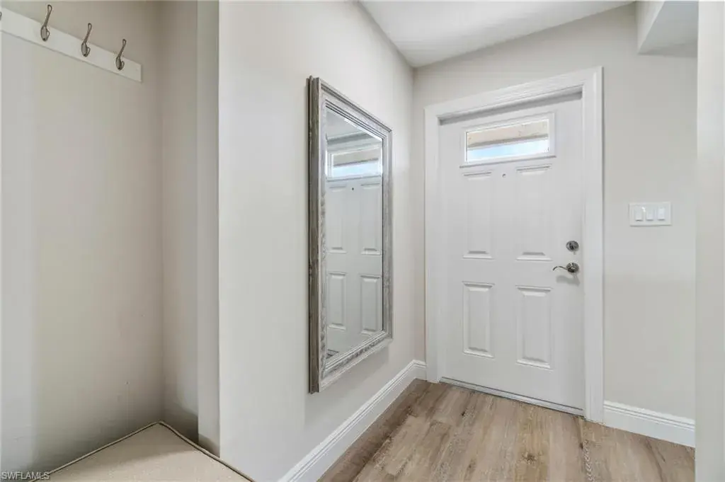 Welcome to your own private escape! This 2nd floor condo in the Glades Country Club is truly a paradise, with tranquil lake and golf views from every window. Enjoy the added benefits of entering this home on a private stairway, split bedrooms, and impact resistant windows and sliders. The interior features stainless steel appliances, quartz countertops, washer/dryer in unit, tub/shower combo in both bathrooms, plank flooring, ceilings fans & window coverings throughout. Step out onto your lanai from either the Master Bedroom or Living Room for an idyllic morning coffee or evening cocktail while taking in spectacular views of the lake and golf course. With two newly re-modeled golf courses – one par 70 and one par 55 – as well as nine resort-style pools within two miles of Naples’ sugar sand beaches. Included are a wide variety of social activities, Art classes, Bingo, Cards & Table Games, Dinner Dances, Karaoke, Seminars, Trips & Tours and Various Sports Activities- Bocce, Bowling, Golf, Pickleball, Tennis, Water Aerobics & Yoga & enjoy the 19th hole private Restaurant >>> What more could you ask for?? Come experience Florida living at its best!