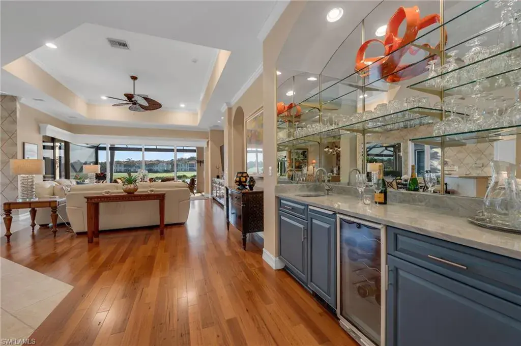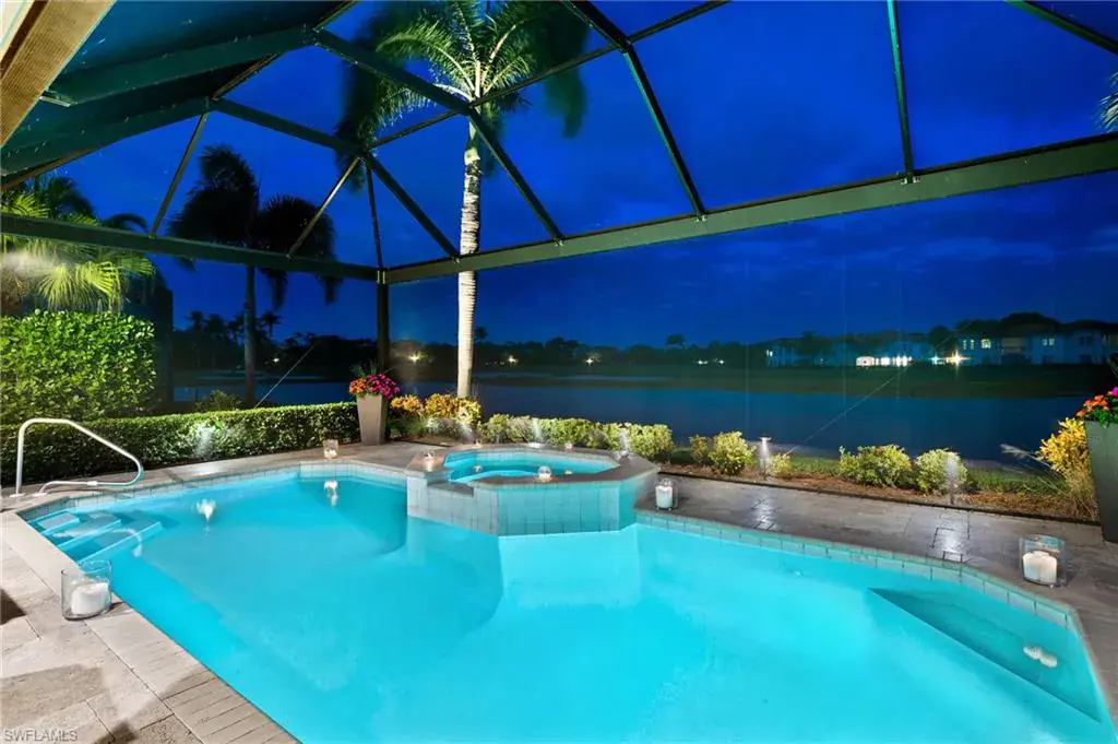 From the moment you enter this beautiful residence, you will be enthralled by the sweeping lake and golf course views of 8th Fairway on the Palm Course. This home is perfect for entertaining, with an updated kitchen and bar…and dining al fresco can be a daily occurrence. With spectacular views through picture window screens, why go to a restaurant for dinner? The travertine lanai was extended for extra space, so throw on some steaks and shrimp on the grill, relax poolside with your favorite beverage, and be entertained by pelicans, herons, and egrets swooping by. Neutral tile floors with added wood floors in the family room, a spacious kitchen, and a wet bar complete with a beverage refrigerator and ice maker, make the perfect home! New roof in 2021, impact windows, 2-car garage with epoxy flooring. This neighborhood offers close proximity to Club amenities, including a 30,000 sq. ft. Wellness Center, Pool Café, the Pointe Grill, resort pool, two Clubhouses, three golf courses, new pickleball center, bocce, tennis, and a myriad of social opportunities. Situated in the heart of Naples, Grey Oaks is just minutes away from the beach, downtown, shopping, and restaurants. Welcome home!