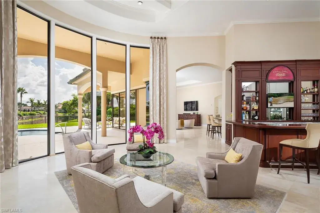 “A touch of the Caribbean” is an estate property in the prestigious Grey Oaks Country Club. Golf membership is immediately available. Facing three Palm Course fairways, this home feels like a private island oasis while also offering lots of entertaining amenities including a spacious lanai with summer kitchen, a long pool with special light-show lighting and beautiful travertine marble flooring. Also, Important to note are the new roof, whole-house generator, whole-house water filtration system, living room fireplace, volume ceilings, air-conditioned three-car garage and a wonderful flow of space. Grey Oaks is an award-winning club with state-of-the-art amenities including three golf courses, a 30,000-square-foot wellness center, active tennis and pickleball, fitness and social programs. Old Naples, fine dining, the beaches, and international and private airports are easily accessible.