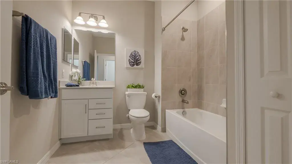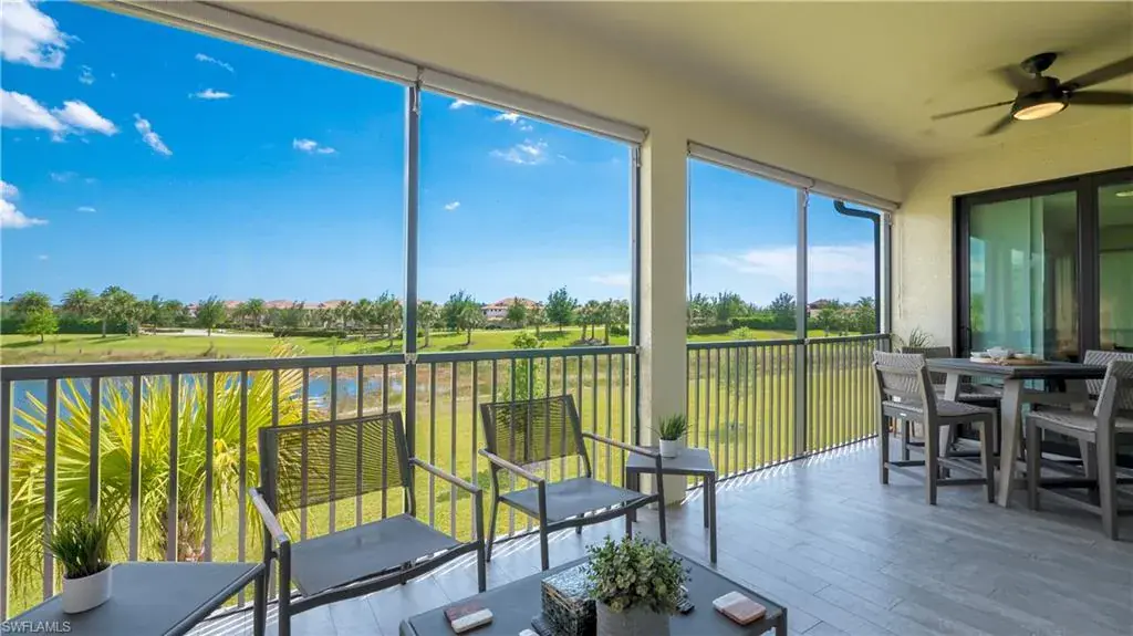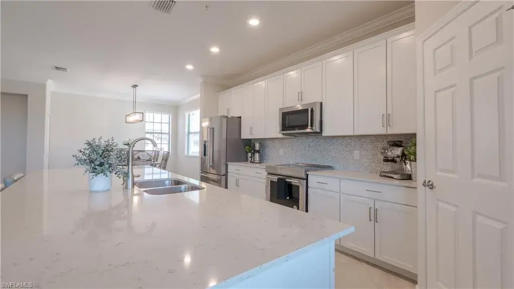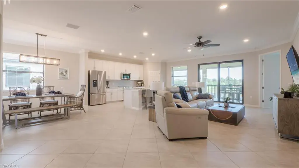 Here is an exceptional 3 bedroom, 2 bath and huge garage coach home in Lamorada, an upscale, intimate, gated community located in north Naples convenient to shopping, restaurants, beaches, and the airport. The sellers have tiled the entire home, including the lanai, so there’s no carpet to worry about. Unlike homes on the opposite side of the street, road noise from Immokalee is not audible from the lanai, which has perfect southern exposure overlooking the lake. All appliances have been replaced with top-of-the-line Kitchen Aid stainless. Oversized bedrooms have walk in closets, and the seller built an additional storage room under the stairs. The oversized 2 car garage is large enough for two cars as well as an additional refrigerator, garbage cans, and workshop or storage or possibly 3 cars, motorcycle or boat . All home furnishings are of the highest quality and negotiable to make your transition to this Florida coach home seamless. Lamorada offers a delightful clubhouse with a restaurant, bar, fitness room, tennis and pickleball courts, and a beautiful resort style pool & spa.