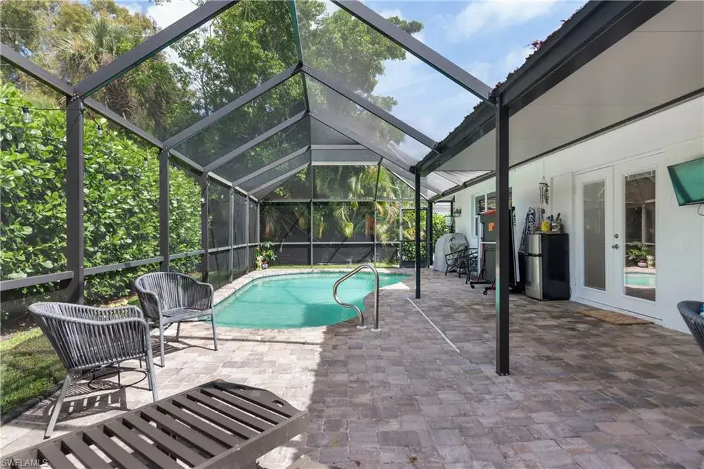 NO HOMEOWNERS ASSOCIATION…VERY POPULAR AIRBNB LOCATION! This furnished newly remodeled screened pool home is nestled in the middle of the Country Club of Naples. It boasts three bedrooms and two full bathrooms, has been recently painted on the exterior and interior, has remodeled bathrooms, new plank floors throughout, new stainless steel appliances, impact resistant glass, new roof in 2018, and Trane AC unit. It also has a pet basin washroom. The yard in completely fenced in.
