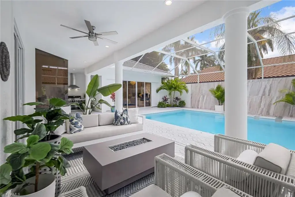 Recently renovated to showcase the finest modern features and finishes, this home is enveloped in a soft, on-trend color palette that enhances its appeal. Step inside to discover a state-of-the-art entry that opens into a private courtyard featuring an oversized lanai, a newly refinished pool with a captivating waterfall, and a welcoming Guest Cabana. The gourmet kitchen is a chef’s delight, featuring a quartz waterfall island, high-end VIKING cook-top, DACOR appliances, dual wine coolers, and more.