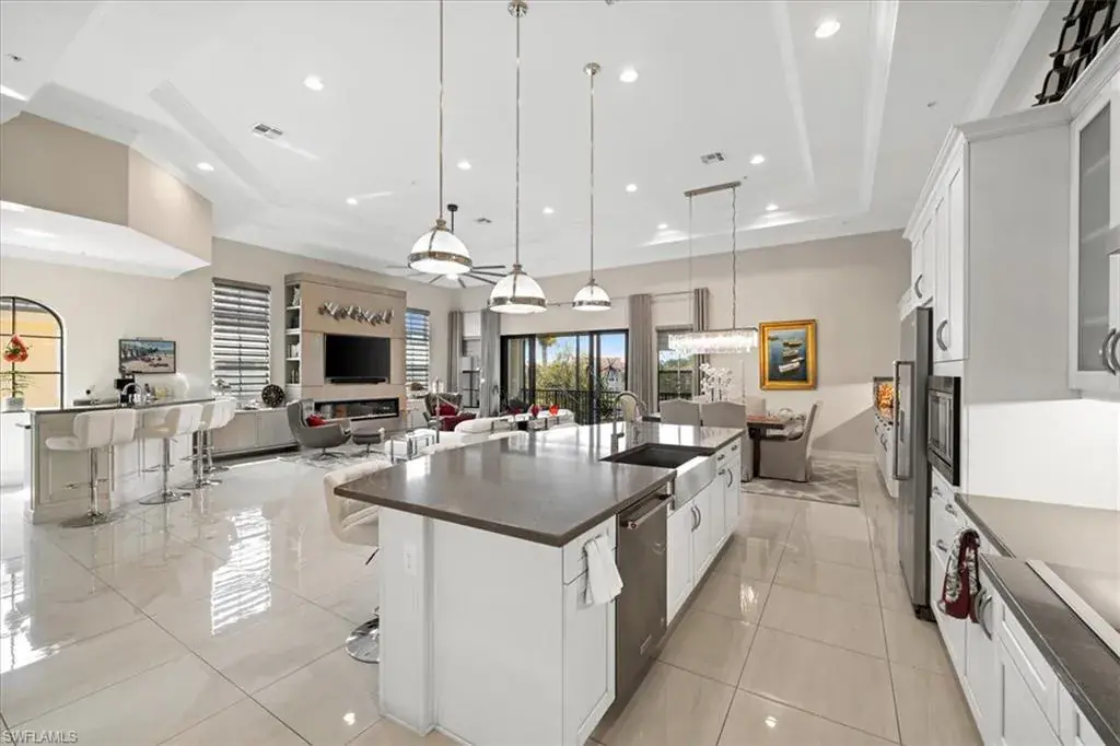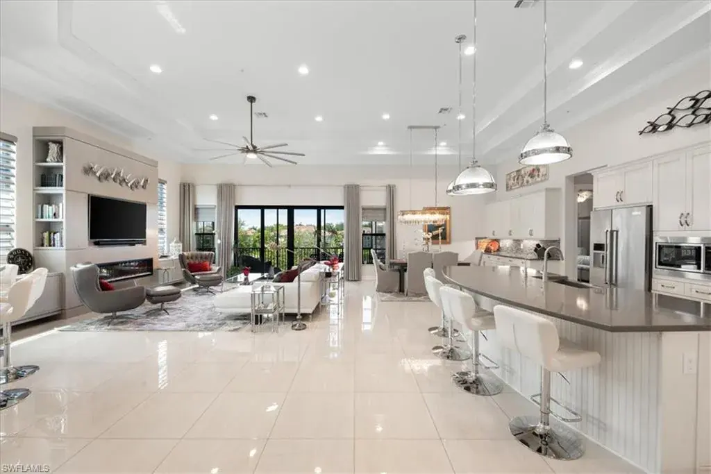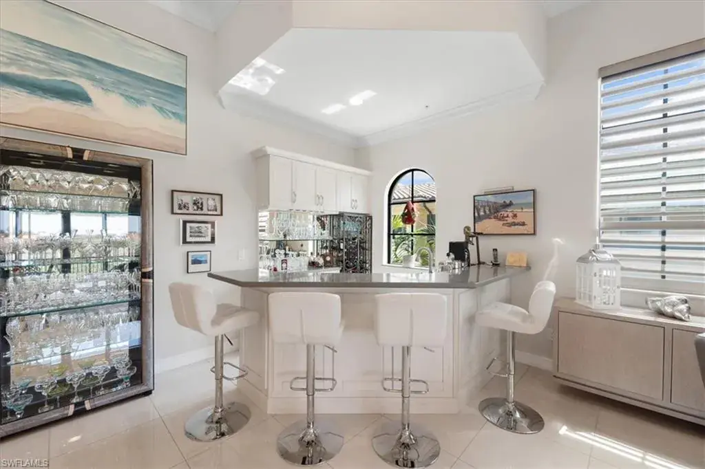 C5512.Ideal Location! Welcome to Regatta Landing, the newest community within Windstar on Naples Bay, just minutes from downtown Naples! This CalAtlantic built 3BR+den, 3.5BA home features sophisticated design and fine finishes throughout. This residence is spacious and luxurious with 3856 sq ft under air and an attached 2-car garage. The private elevator takes you up to the elegant, open concept home with soaring ceilings, gourmet kitchen with island & separate bar area. The spacious living area with custom wall unit including 6′ Dimplex fireplace, opens up to the screened balcony overlooking the golf course & lakes. The master suite offers a private sitting area w/access to the lanai and two huge walk-in closets. The spa-like master bath offers a tranquil space with soaking tub, two vanities, large walk-in shower and tons of storage. Located minutes to beautiful beaches, Regatta Landing is one of Naples best kept secrets. Residents enjoy a spectacular pool/spa and grill room all just steps away! Windstar is a premier gated community offering the best in golf, tennis, boating & luxury amenities. Owner’s Golf Membership is available to transfer.