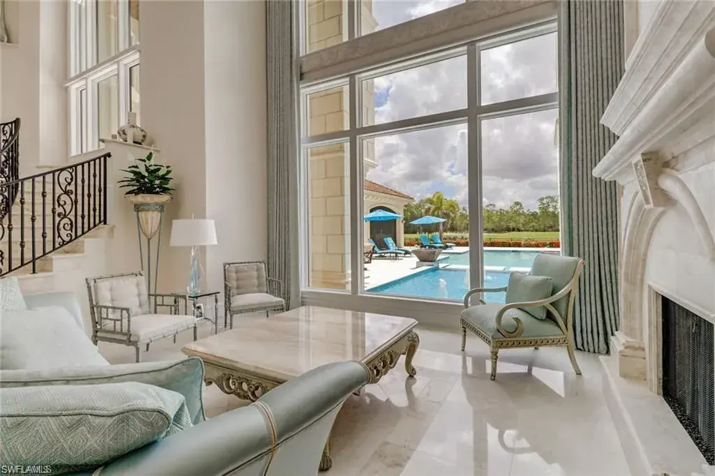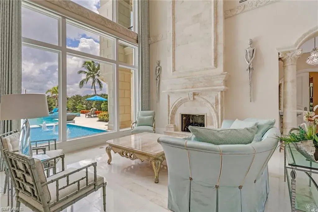Incomparable in design & location, this masterfully constructed one-of-a-kind Escada Estate home presents Sweeping Golf Course and Lake Views. This is the ultimate family home from two levels of expansive terraces & endless floor-to-ceiling glass. Sleek exterior details like the marble driveway & 5 car garages. The designer chefs gourmet kitchen is beautifully appointed with dramatic cabinetry and quartzite counters, island work area, butlers pantry and wine room. Marble floors through the house and as you enter the home the massive crystal chandelier from Austria. Central elevator. The second floor features three bedrooms with end suites, a cinema room, morning bar and several terraces. Owner’s suite on the first floor overlooking the pool. Enjoy Florida lifestyle in the expansive outdoors with heated resort style pool w/ jacuzzi, pizza oven and summer kitchen with fireplace covered by retractable screen offering fiery sunset skies over the Gulf of Mexico. Enjoy the first-class amenities Tiburon offers exclusively to residents including the gorgeous Country Club offering casual and formal dining, tennis club and golf membership at the award-winning Golf Club.