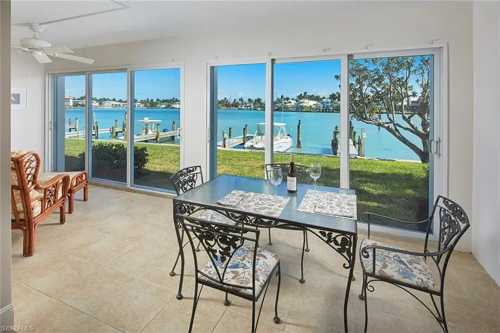 Welcome to your slice of paradise in Naples! This renovated, first-floor sanctuary is a coastal haven with captivating features. Sweeping bay views greet you when you step into this two-bedroom, two-bath corner unit. Watch the morning sunrise, marine life, and boaters heading to the gulf from your private waterfront retreat. For the boating enthusiast, slips may be leased through the management association with direct gulf access with no bridges. The recently refurbished Spindrift Club boasts a new pool and pool deck, a chic lobby with secure entry, covered carports, poolside grills and part-time manager. Lush landscaping envelops the grounds, creating a tropical oasis. Cross Gulf Shore Boulevard to the pristine, white-sand beaches for leisurely strolls or sunset spectacles. Indulge in the convenience of dining and boutique shopping at Venetian Village, Waterside, and 5th Avenue, all just moments away. This property is more than a home, it’s an invitation to a lifestyle where every day feels like a vacation. Don’t miss the chance to own a piece of Naples’ desired Gulf Shore Boulevard in the Moorings where each day is a celebration of sun, sea and sophisticated living.