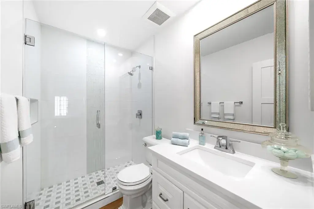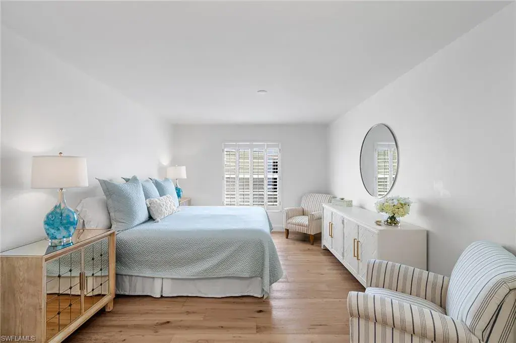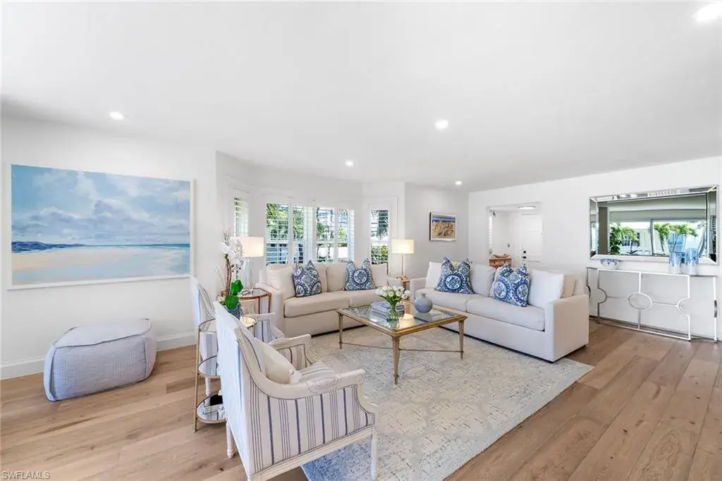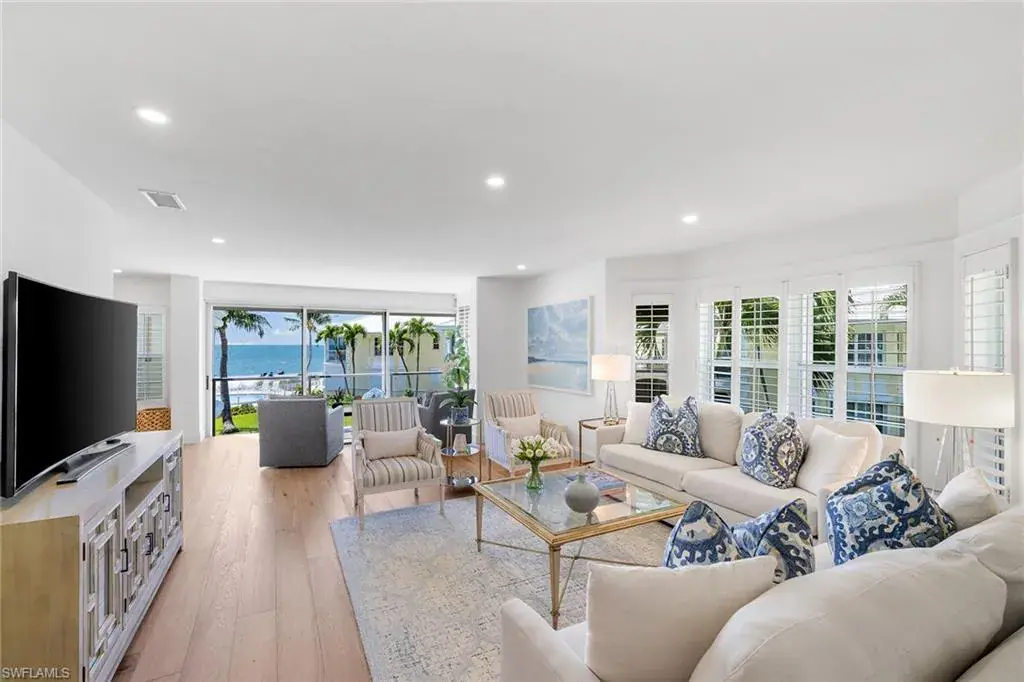 From the moment you enter this light and bright coastal villa, you’ll be struck by the stunning, unobstructed view of the beach and the Gulf. This well-appointed second-floor villa is perfect for the most discerning buyer and is being offered turnkey furnished. A complete renovation was done in 2020 with Legno Bastone hardwood flooring, new kitchen cabinets, quartz countertops, Bosch stainless steel appliances, gorgeous shower tiles, recessed lighting, plantation shutters, AC, and hot water heater. This is one of the few villas with laundry in residence. Located in the heart of The Moorings, this charming and well-maintained beachfront complex with only 48 villas offers the perfect Naples lifestyle. Luxury shopping and fine dining are minutes away at Venetian Village and 5th Avenue.