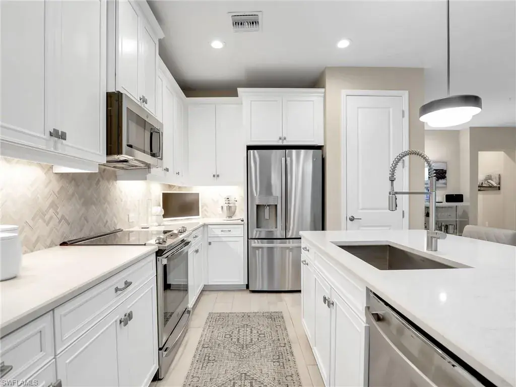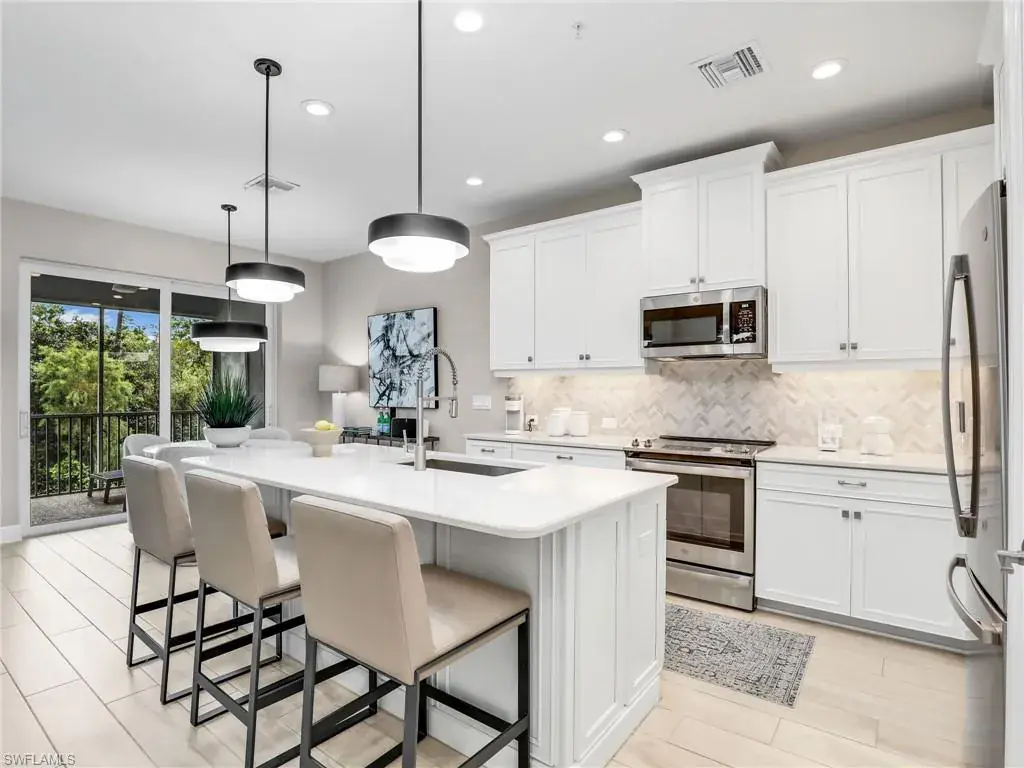 ONE OF THE BEST LOCATIONS IN THE COMMUNITY, PRIVATE PRESERVE VIEWS. Welcome to your exquisite second-floor coach home, a true gem offering 3 spacious bedrooms, 2 luxurious bathrooms, and a convenient 2-car garage. Step inside to discover a meticulously upgraded interior that shows like a model home, featuring custom closets designed for optimal organization, elegant custom lighting, and recessed lighting throughout that illuminates every corner. The modern kitchen and bathrooms are adorned with sleek quartz countertops, providing both style and durability. Impact windows offer peace of mind and energy efficiency. The garage is equipped with a 240V outlet for EV charging. Nestled within the beautiful community of Seychelles, this home boasts resort-style amenities that cater to your every desire, including a state-of-the-art fitness center, a stunning resort-style pool and spa, a BBQ area perfect for entertaining, and a cozy fire pit for those serene evenings under the stars. Why wait for new construction when this impeccable home is ready for you to move in today?! Located just 10 minutes from downtown Naples and 5th Avenue, come experience luxury living at its finest, with every detail thoughtfully crafted to enhance your lifestyle.