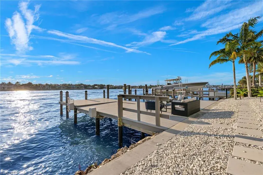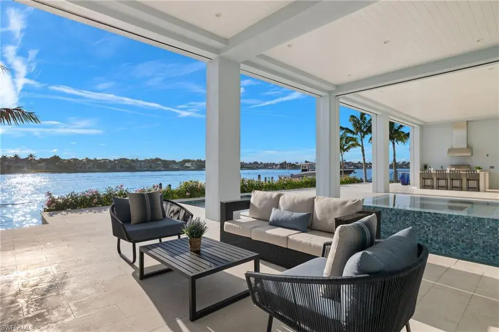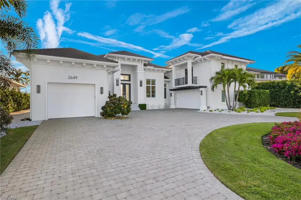 Welcome to 2649 Tarpon Road in prime Royal Harbor location boasting 100 feet of stunning Naples Bay frontage. Built in 2019 by Big Island Builders this incredibly designed western facing custom home features 5 Bedrooms and 6 Baths in almost 5300 square feet of living space under A/C. Enter the dramatic foyer to courtyard views of the outdoor saltwater pool, spa, fountain and bay views. Dramatic ceiling heights throughout and handsome wide plank hardwood floors. Impeccable craftsmanship and attention to detail throughout. Lovely office with custom built-ins. Open-concept living area with walls of sliding seamlessly blending indoor/outdoor living.