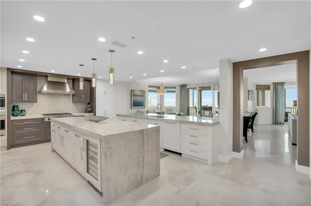 This is the one you’ve been waiting for!!  From the moment you step off of your private elevator in to this stunning 4bd/3.5 bath condo on the 17th floor, you will be treated to breathtaking, panoramic views of Turkey Bay and the Gulf of Mexico.  A newly-remolded kitchen, compete with wolf/sub-zero appliances, a double island and countless upgrades, is ready for you to move right in and start enjoying the Naples lifestyle.  A thoughtful floor plan that offers maximum privacy for you, your family and guests.  The beautiful designer finishes in every room add to the allure of this one of a kind condo.  The Grande Geneva has its own pool, exercise center and beautiful social room.  In the heart of the community, residents enjoy The Club at the Dunes – a 25,000 square foot amenity center offering a resort style pool, indoor/outdoor food and beverage options, fitness center, tennis center as well as additional recreational and social activities.  Finally, this condo comes with the ability to have The Floridian Beach Club membership, which is one of the most exclusive and best beach clubs in Naples.   There is a shuttle service that provides transportation to and from the Beach Club with membership.  This condo is one you can not  miss!