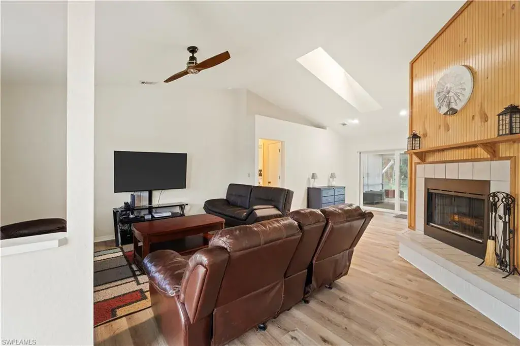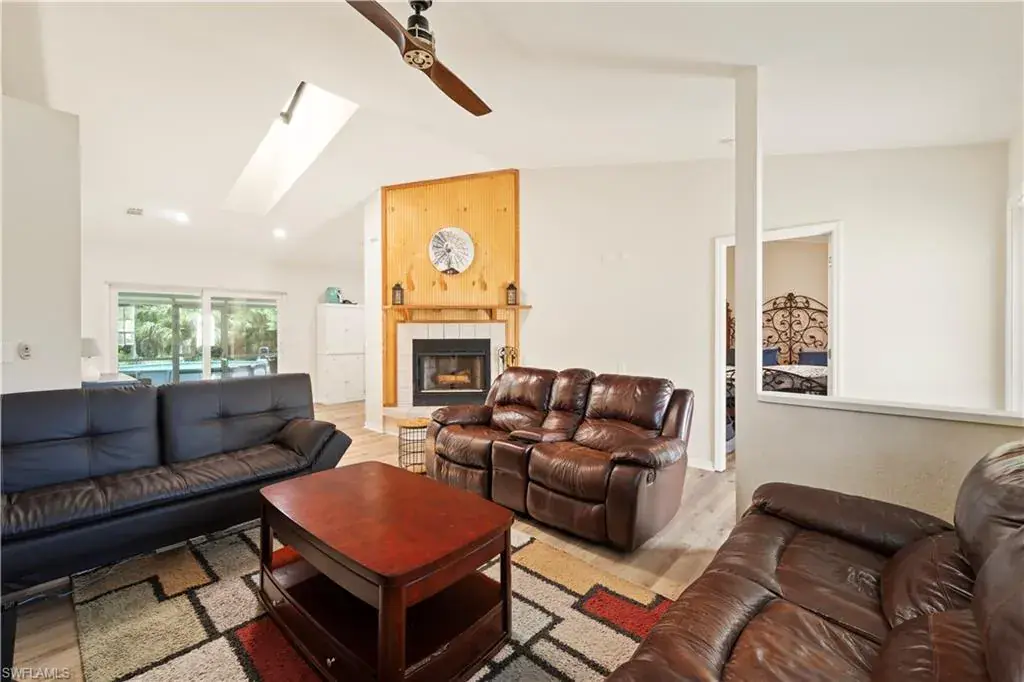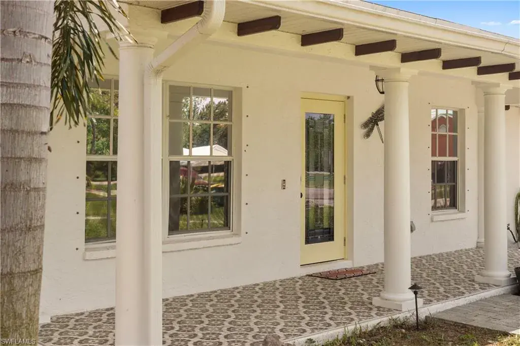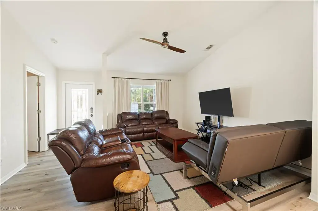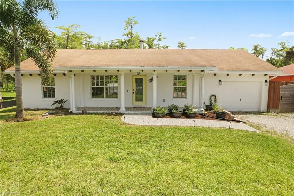 Welcome home to the beautiful Golden Gate Estates. This stunning practically new property offers a perfect blend of comfort and spaciousness. As you enter, you’ll be greeted by an abundance of natural light. The interior boasts vinyl wood-like floors throughout, creating a sleek and modern ambiance. The kitchen features new, complementary appliances. Your primary bedroom showcases crown molding, and upgraded bathroom shower, adding a touch of sophistication to the space, and a walk-in closet. Picture yourself starting each day surrounded by the soothing sounds of nature, enjoying a cup of coffee on your covered private lanai. The expansive 1.14 acre lot and is fenced in for privacy with a raised garden bed. It also includes a 12ft x 10ft outbuilding and is ready to be transformed into your own personal paradise. Close to shopping and restaurants, this home offers the perfect balance of privacy, space, and convenience.