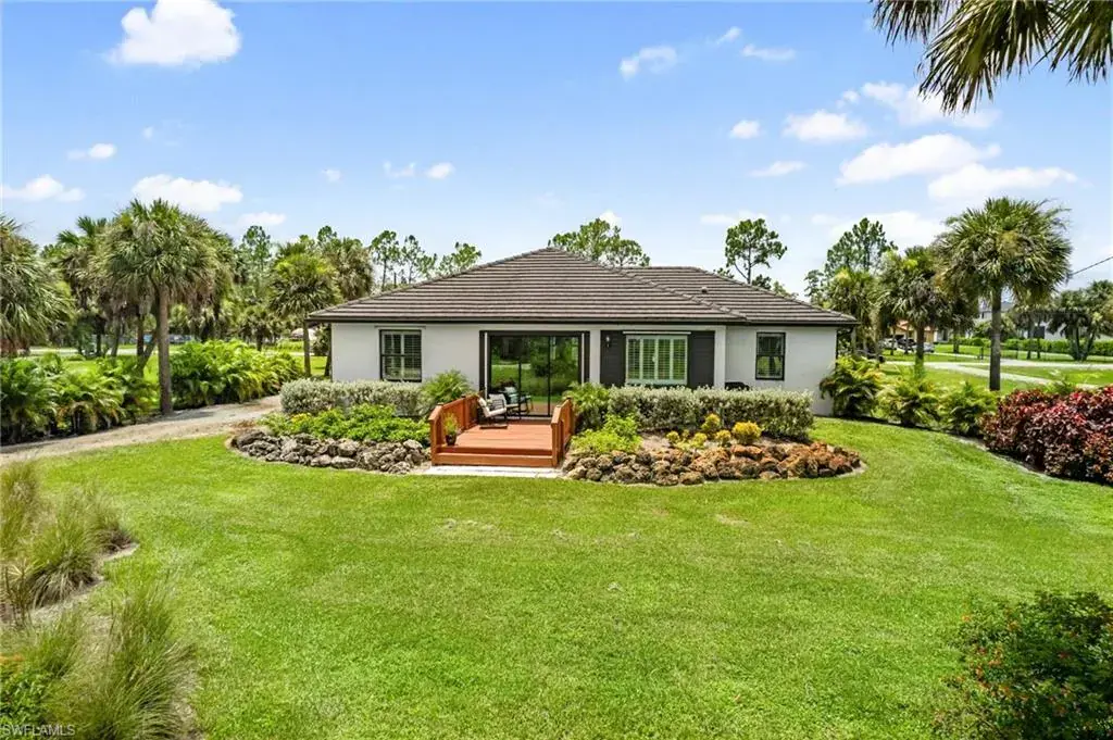 Introducing a captivating contemporary home built in 2018. This stunning property features a spacious open-concept floor plan with recessed lighting, ceiling fans, 8ft doors, wood grain floor tile, and crown molding. The kitchen showcases high-end finishes including real wood cabinets, stainless steel appliances, quartz countertops, and a central island for seamless cooking and entertaining. The owners suite offers two walk-in closets and a beautifully designed ensuite shower. Additional bedrooms provide ample space and storage. Outside, the property stands on 2.27 acres and features a two-car garage, a driveway paved with grey stones, new landscaping, and a grass irrigation system. Ideal for those seeking a spacious and modern home for living or investment purposes.