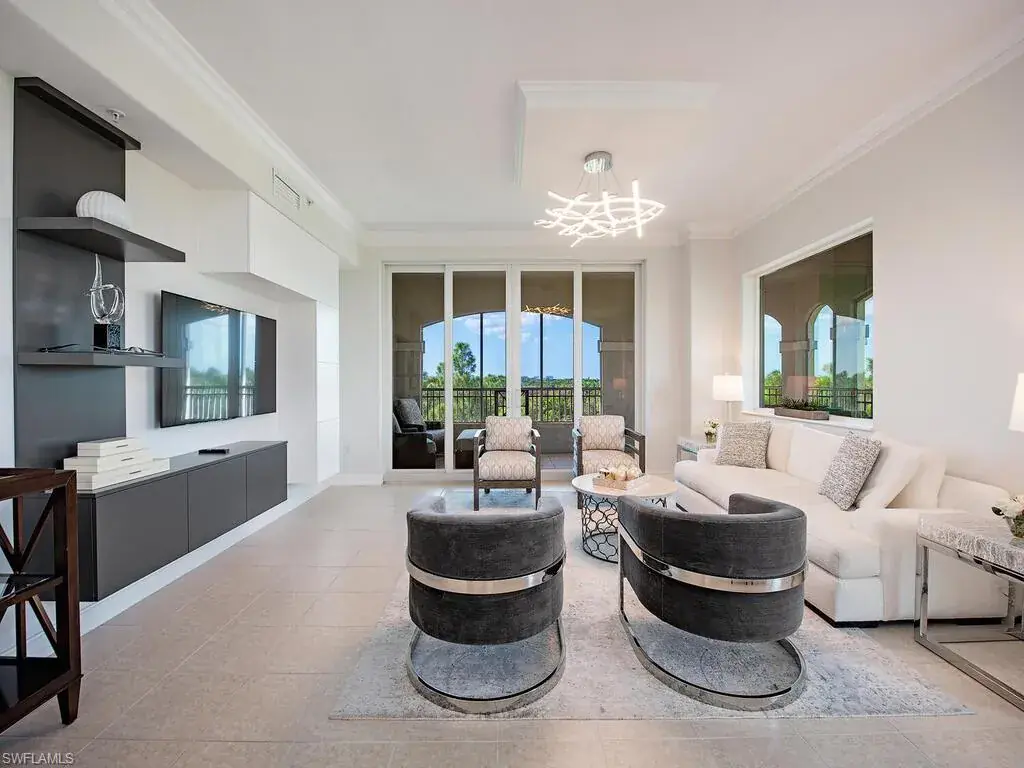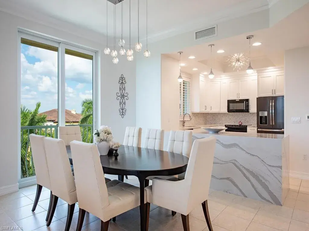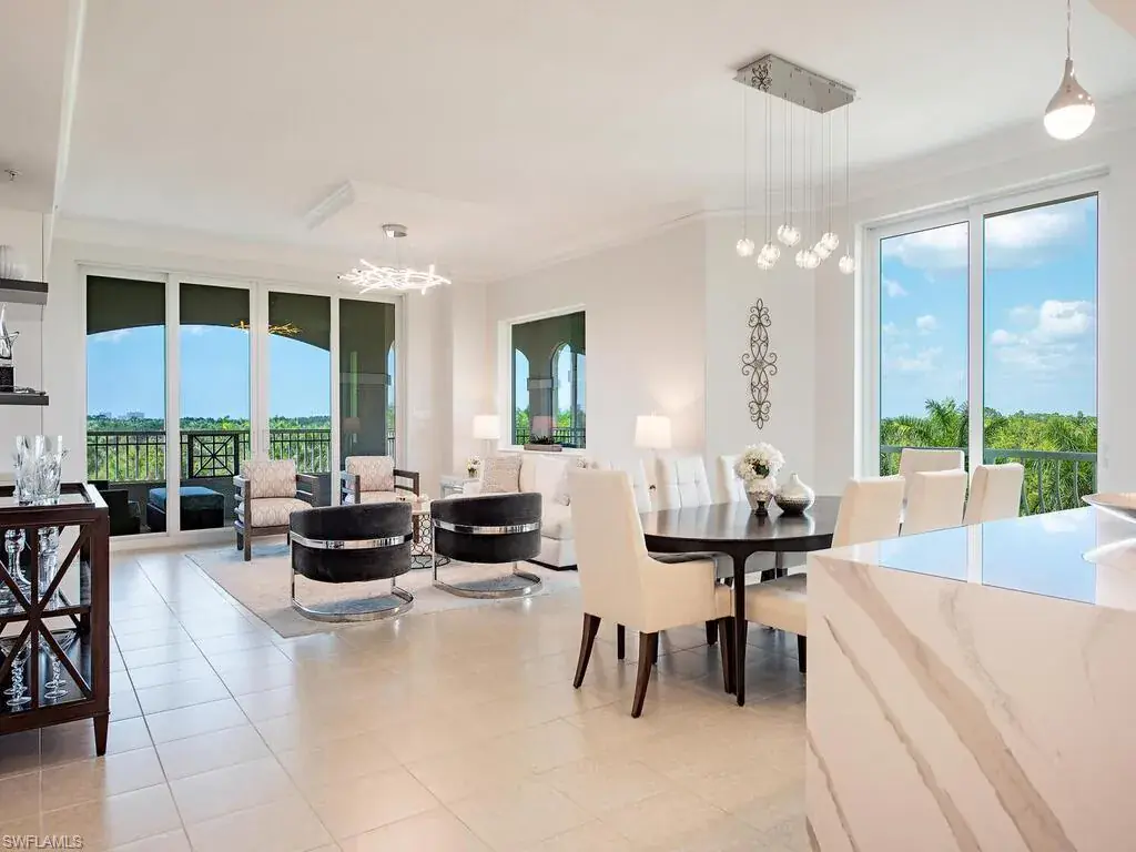 Experience unparalleled views from this corner Penthouse in Ventanas at Tiburon. Overlook stunning sunsets, the Ritz Carlton and Tiburon Golf Course and extending to the Pelican Bay towers. This 2+Den 2.5 bath unit is fully furnished, updated, and ready for season. Elegance defines the interior, featuring revamped kitchen with new white cabinets, quartz countertops and large waterfall-edge peninsula that opens to bright living/dining area. A floating cabinet serves as a chic entertainment center. The layout includes wrap-around lanai ideal for lounging and dining. The spacious owner’s suite has walk-in closet and a renovated bathroom featuring dual vanities. The guest suite offers an updated bath and private lanai access, while the den can function as a third bedroom. Updated in 2020, the building has impact-resistant doors/windows and new roof. Living here grants access to multiple dining and events at the Ritz and Tiburon Golf Club. Ventanas residents enjoy a lush community pool. Tiburon Club membership allows for year-round golfing on two 18-hole championship courses and watching pro tournaments. Available for immediate purchase is the seller’s Medallion Full Golf Membership