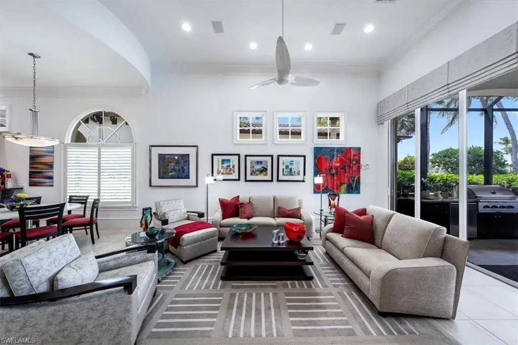 Stunning views of the lake and golf course is the back drop for this fabulous outdoor oasis with, brand new pool and hot tub, new pool deck and pool cage, new outdoor kitchen, pool powder room, electric storm shutters and large covered entertainment area for a tranquil sunset cocktail. This home was meticulously executed by the original owners who have flawlessly maintained it; total pool renovation 2023, new outdoor grill, cage and custom electric shutters 2023, new front exterior entry flooring 2023, golf cart garage and all new garage doors 2022, customer garage cabinets and epoxy floor, new GENERAC generator 2022, new primary bath and custom closets 2022, new 500-gallon propane tank 2022, new roof 2019, new DYCON AC 2 zones 2015 and much more. The living spaces are open with high ceilings and great natural light; gracious primary suite with seating area and new stunning master bath along with new custom closet, 2 large guest rooms en-suite, a formal powder room and a pool powder room, wonderful multiple entertaining and living areas. Don’t miss this incredible value and opportunity.