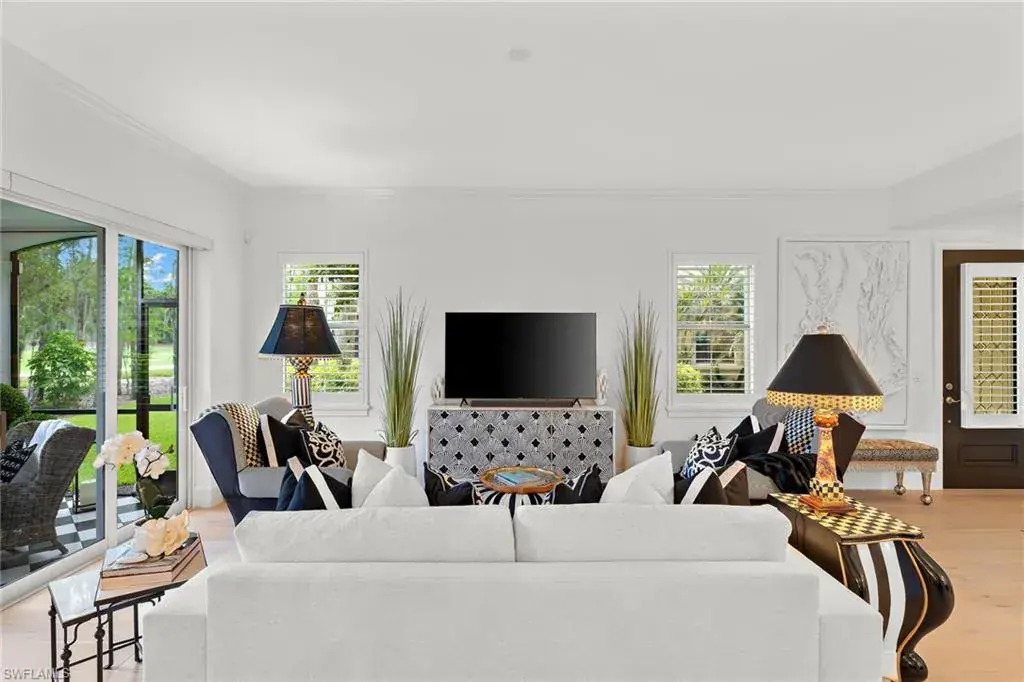 Completely updated ground-floor residence that lives like new with views over the second hole on the Greg Norman designed Gold Course. This luxurious condominium, located within the prestigious Castillo at Tiburon neighborhood, offers single-level living and includes a two car garage. Perfect for entertaining, sliding glass doors lead out to a spacious screened lanai, allowing the interior living spaces to blend harmoniously with the exterior spaces and surrounding tropical vegetation. Impressive updates include fully remastered primary and guest bathrooms and an open kitchen with top-of-the-line appliances including a natural gas range, quartzite counters, and tile backsplash. Stunning finishes continue throughout the living room, dining room and bedrooms, providing comfortable & private space for family & friends. A tropical setting perfectly located for one who seeks the convenience of being close to Naples’ famous sugar sand beaches, Artis-Naples, and 5th Avenue South. This is luxurious Ritz-Carlton living at its best. A MUST SEE ground floor single-level condo that will not last long.