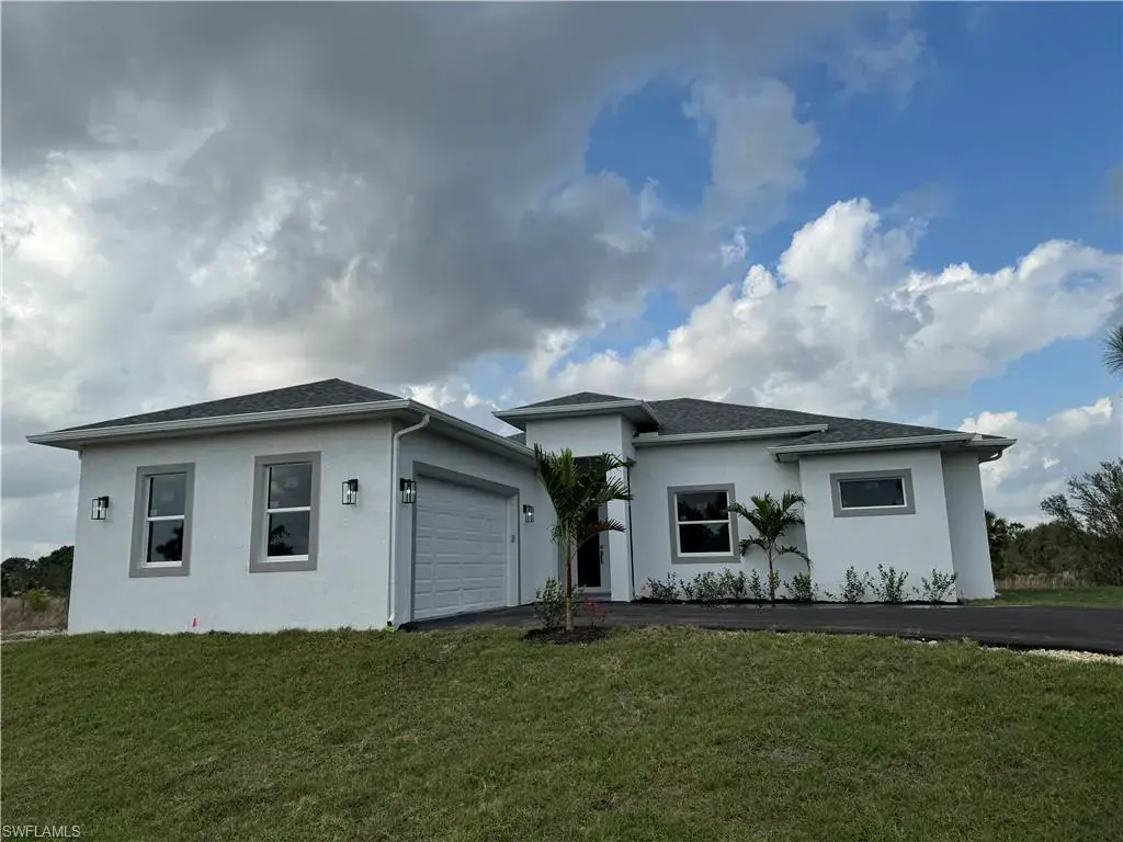 Enjoy the best of Florida living in this spacious 2386 square foot, 10 feet high designed new construction located in the beautiful and safe city of Naples. This house was built by GC Fonseca Construction, Inc, with 4 bedrooms, 1 den/office, 3 baths, a large lanai, energy-efficient stainless steel appliances, porcelain tile floors, impact-resistant windows , 8 feet doors, custom wood cabinets with quartz countertops in the kitchen, bathrooms, and laundry and a 2-car garage and 2 additional guest parking spaces. The house is situated on a 2.27-acre 100 % upland lot with plenty of room for a pool.Reverse osmosis will be installed at closing.There are 47 feet of space on both sides of the house to drive to the back of this lot. It is available for showing and ready to close in 30 days.