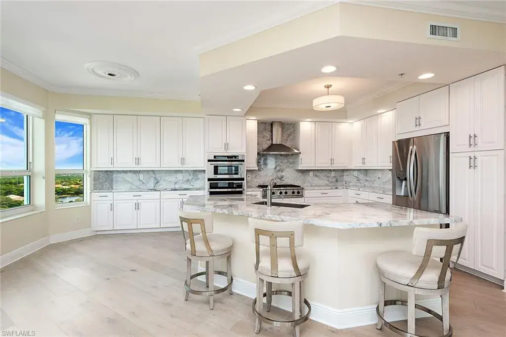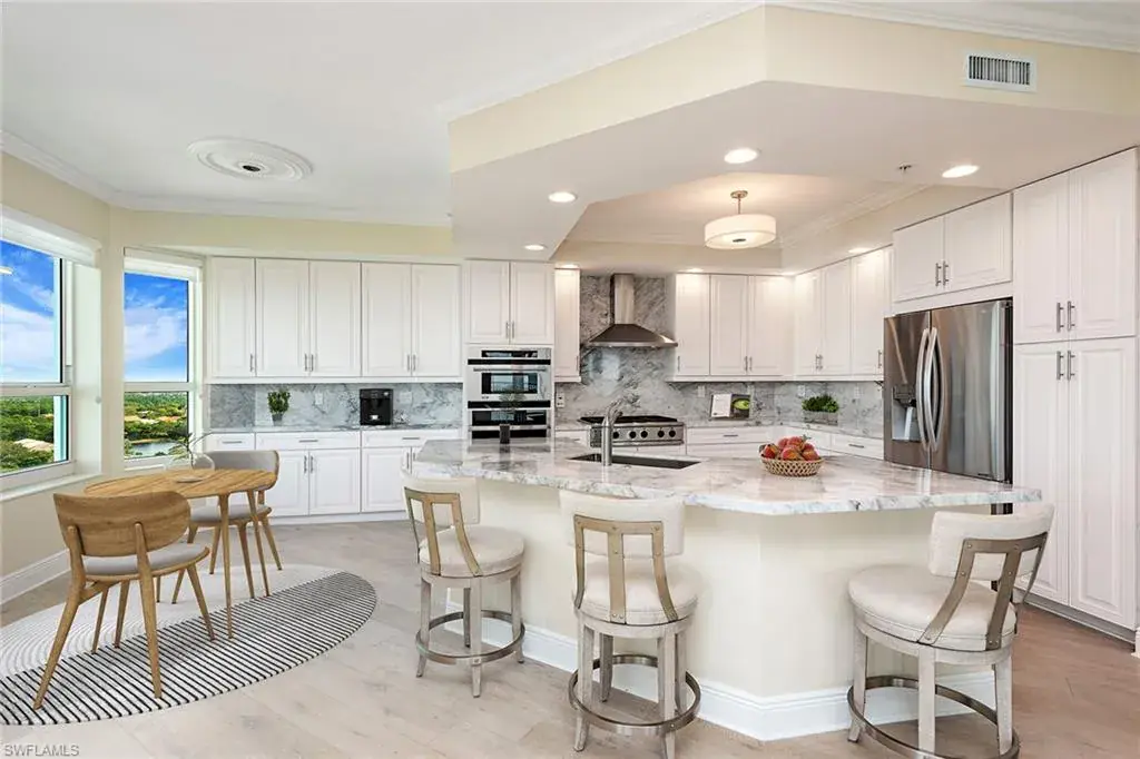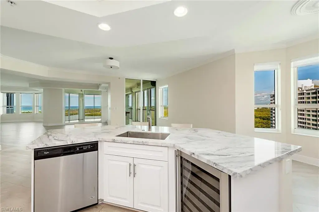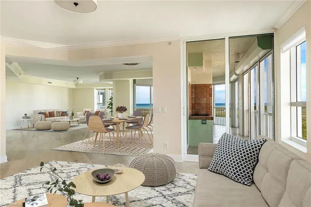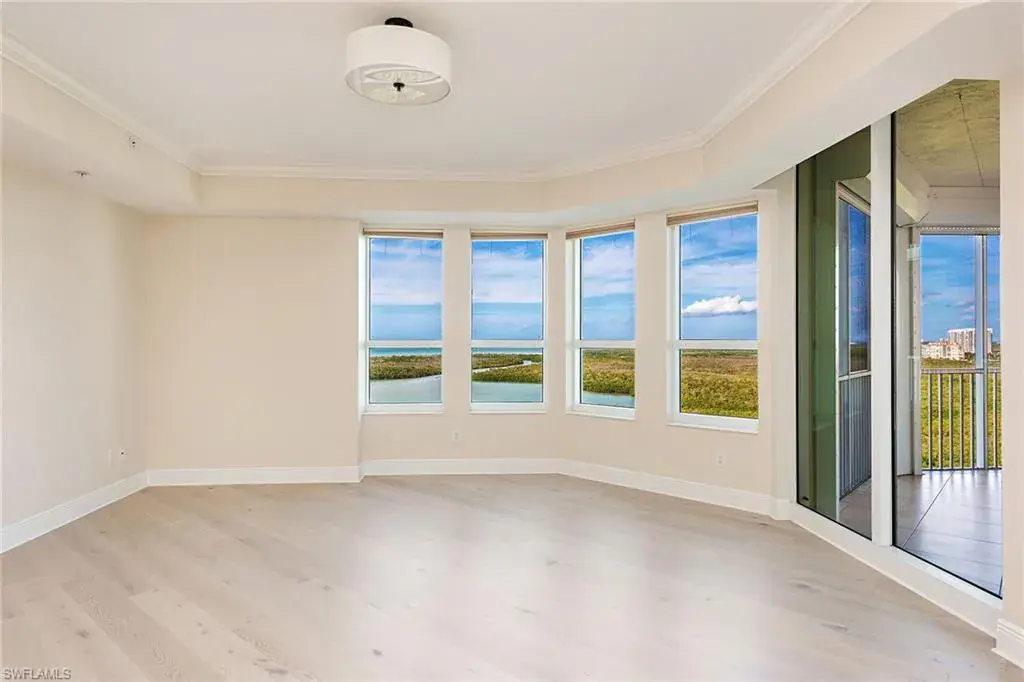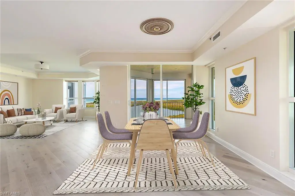 Spectacular water and nature views from the 16th floor! This apartment has had no Hurricane damage in the unit. In the gated enclave of The Grande Preserve at the Dunes, this beautiful spacious end residence with over 3400 square feet is wonderful for entertaining. With three bedrooms with en suites, one half bath, large dual walk-in closets and gorgeous Legacy hardwood floors. The renovated kitchen has been opened up and offers six-burner gas stove, upgraded appliances, and Antolini Azerocare stone countertops. The lanai provides an outdoor grill and electric hurricane shutters. Enjoy the wonderful amenities of The Dunes such as the private Floridian Beach Club, Plantation Club and concierge services. The Floridian Club has a full-service restaurant, pool, towel and chair service, cabanas, guest suites and private door-to-door shuttle service. The Plantation Club offers a full-service restaurant, resort-style pool, spa, tiki bar, fitness center, tennis center with pro-shop and guest suites.Virtual staged.