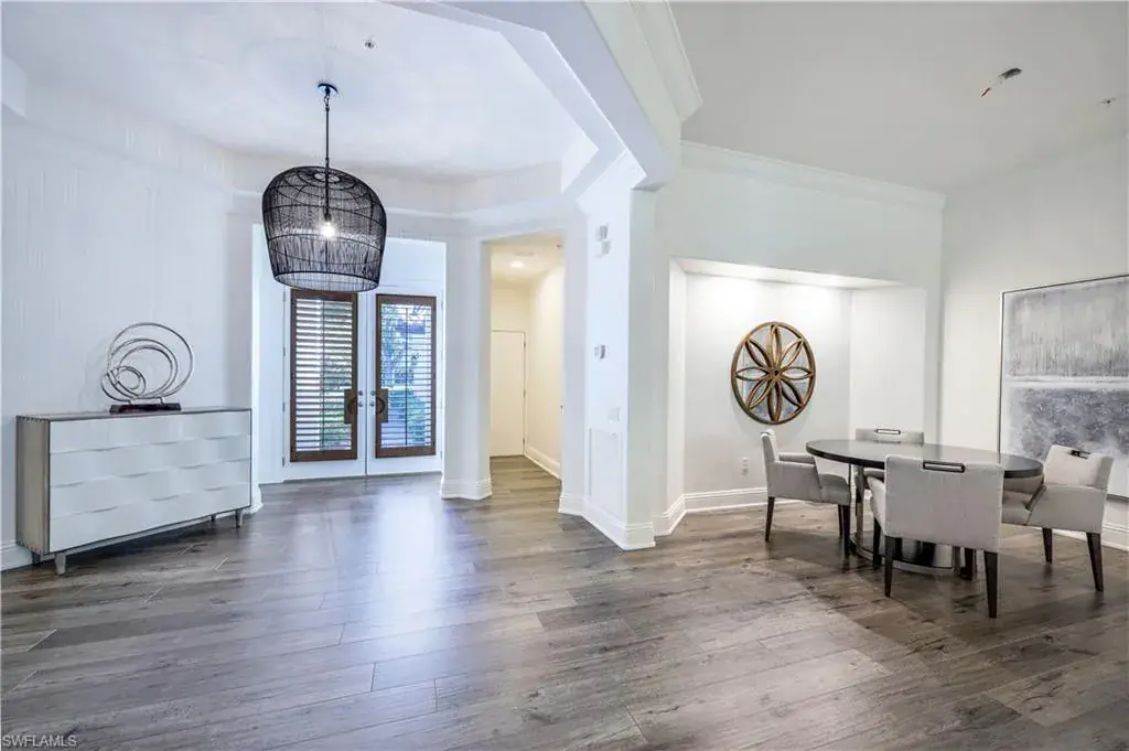 NEWLY RENOVATED AND OFFERED FURNISHED first floor Calabria coach home located in the award winning gated community of Mediterra. Spacious, meticulously appointed home boasts 3 bedrooms with 3 full baths plus a den. Relish the private serene preserve views from your renovated kitchen, family room and lanai. Calcutta marble countertops complete your modern fully equipped kitchen. New luxury vinyl flooring installed throughout and all new kitchen/laundry appliances only add to the sleek look of this coach home. The new cabinet/vanities installed in all three bathrooms and kitchen as well as added cabinets to garage and storage closet do not disappoint. The list goes on for upgrades and improvements to this impressive coach home. The Mediterra Golf and Beach Club is a private club featuring 2 Tom Fazio designed golf courses, sports club with 8 har-tru tennis, 7 pickleball, 4 bocce courts and state of the art fitness center, private beach club and 2 restaurants. Multiple levels of membership are offered.