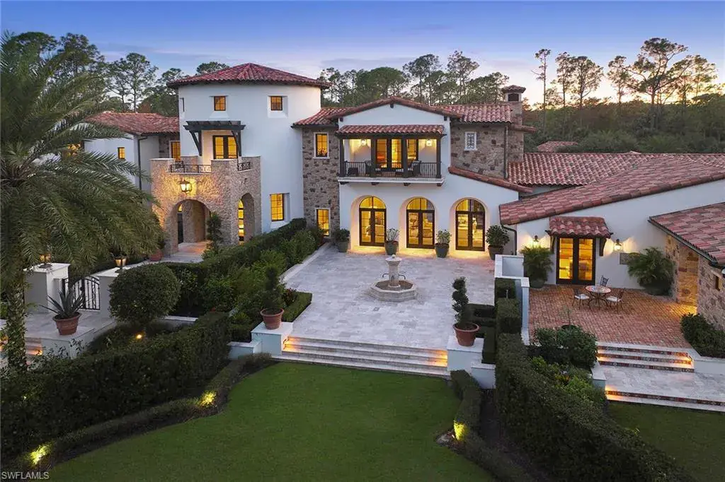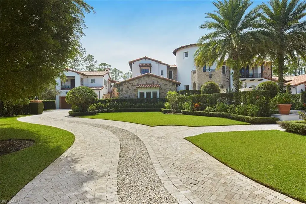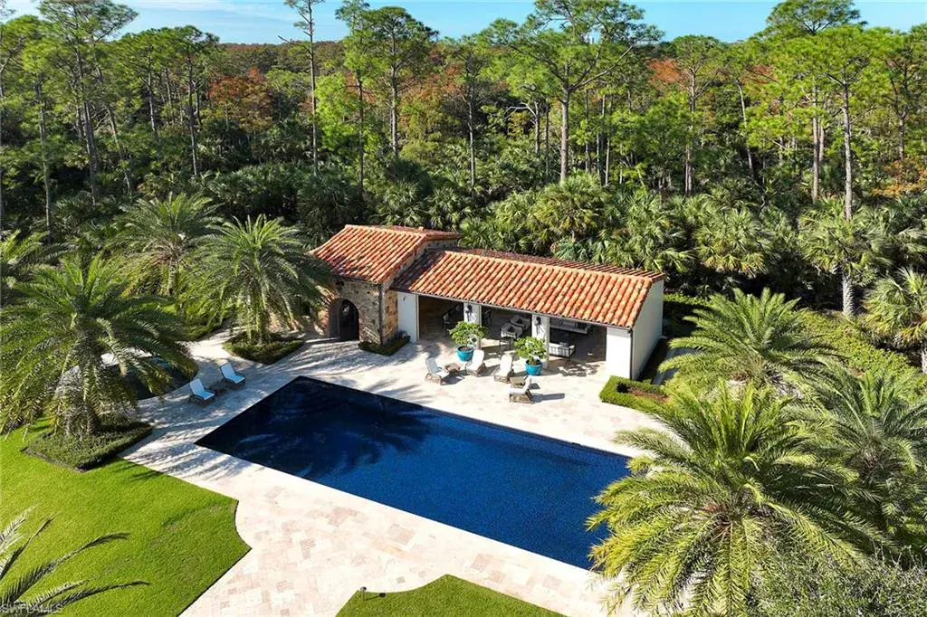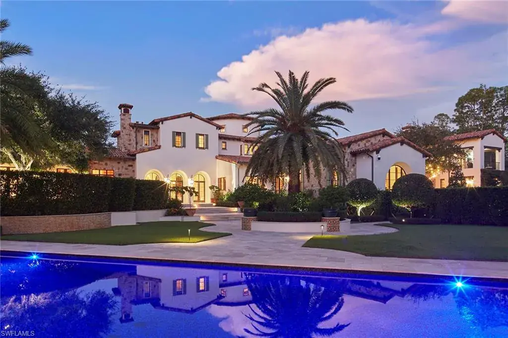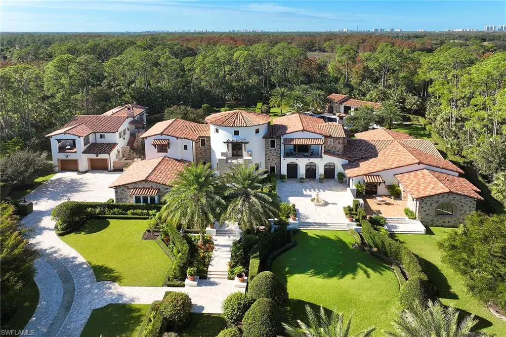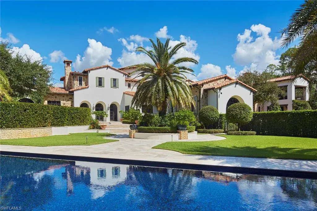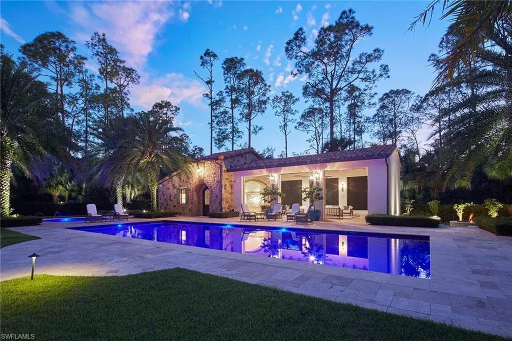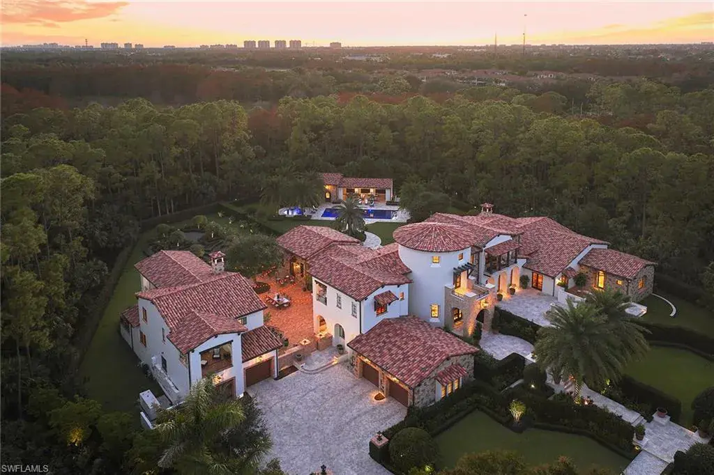 Welcome to 28970 Il Cuore Court, a masterpiece in the prestigious Mediterra Golf Club community. Crafted by London Bay Homes in 2017, this Italian Tuscan-inspired estate spans nearly two acres, surrounded by a serene 50-acre preserve, offering unmatched privacy and tranquility. This magnificent estate offers immediate Mediterra golf membership eligibility and consists of a main house, guest house and pool pavilion. No detail has been overlooked. From the moment you enter the two-story rotunda foyer, you are greeted by the grand staircase, subtle Venetian plaster walls and exquisite marble flooring. The custom kitchen is a chef’s dream with dual AGA ranges, English bespoke Smallbone cabinetry, Sub-Zero refrigerator and beverage drawers along with dual dishwashers and ample space to create that ideal holiday dinner. The kitchen opens to a spacious family room featuring a vaulted wood beam ceiling with views to an inviting central courtyard highlighted by reclaimed Chicago brick pavers overlooking stunning Italian gardens complete with a variety of citrus trees. Relax and entertain family and friends in the mild Naples climate at the separate pool pavilion featuring a pool bath, full kitchen, 54-inch Viking grill and covered great room area with automated screens and shutters opening to a mosaic-tiled pool, natural gas fire pit and 14-person spa. The detached guest house with full kitchen, living room and two bedrooms with en suites is ideal for out-of-town guests. The elegant main house also includes dual studies and a spacious primary suite with a private screened lanai. Additional features of this unparalleled estate include a 100-kilowatt generator capable of operating the entire property, four-car climate-controlled garage spaces and Crestron home automation. A world of luxury awaits you in the exclusive Mediterra community with two 18-hole Tom Fazio-designed golf courses, a full-service wellness and fitness center, and a magnificent recently refurbished beach club complete with a rooftop pool and waterfront dining on the white powdery sands of the Gulf of Mexico. Don’t miss your chance to own this extraordinary estate!