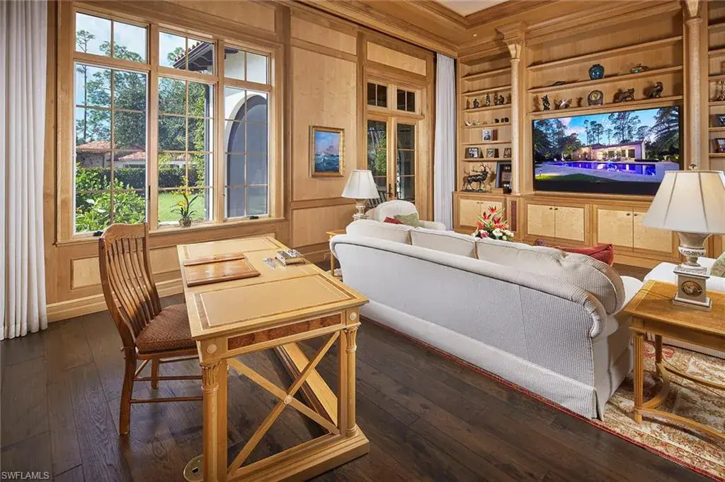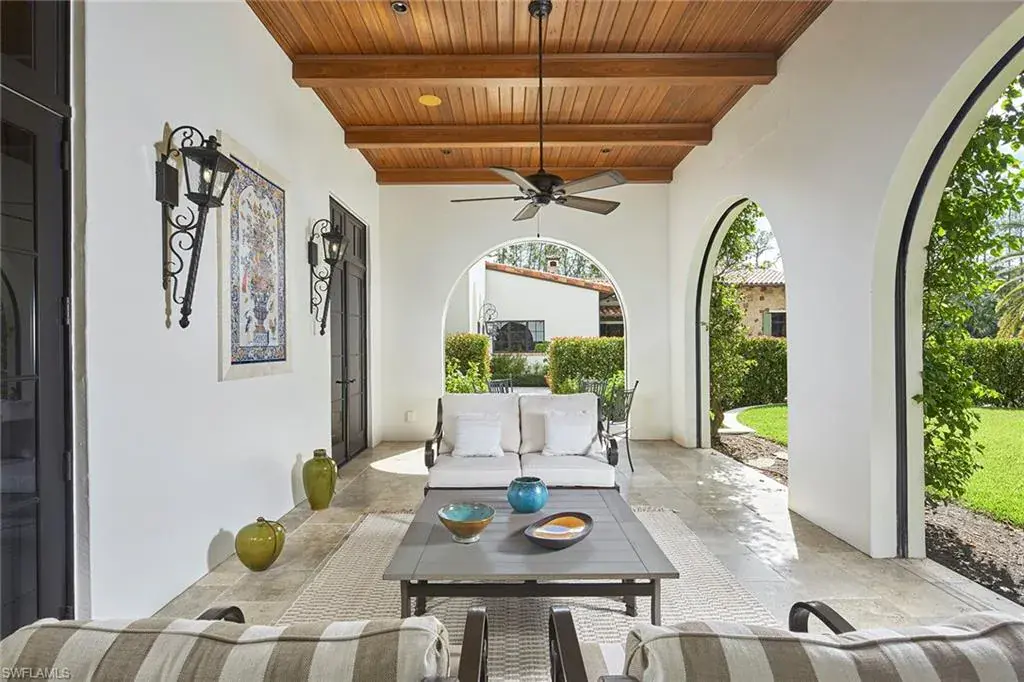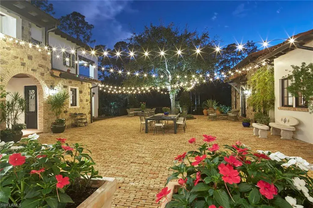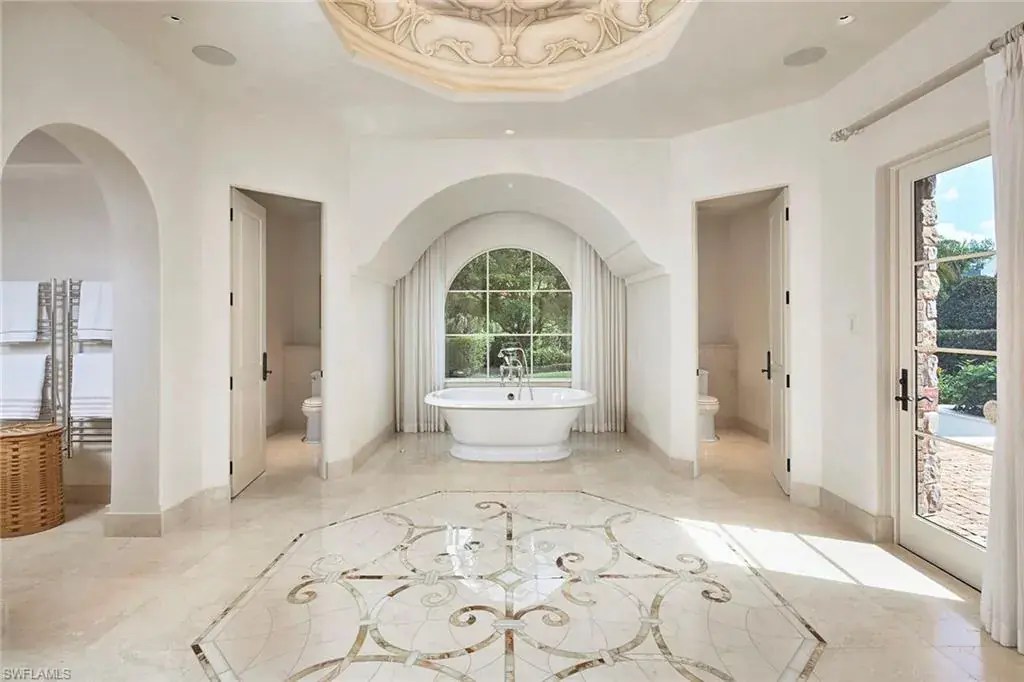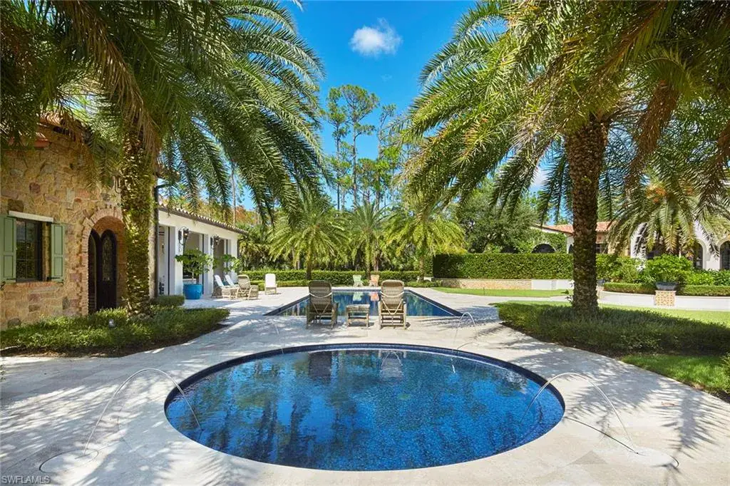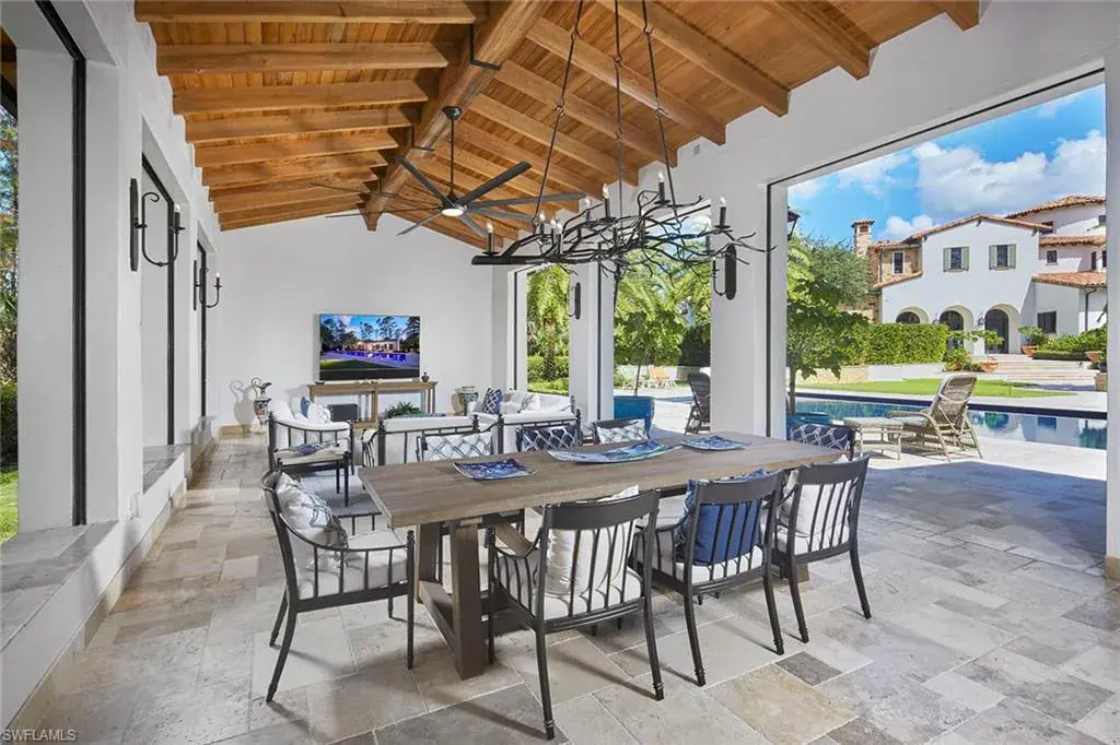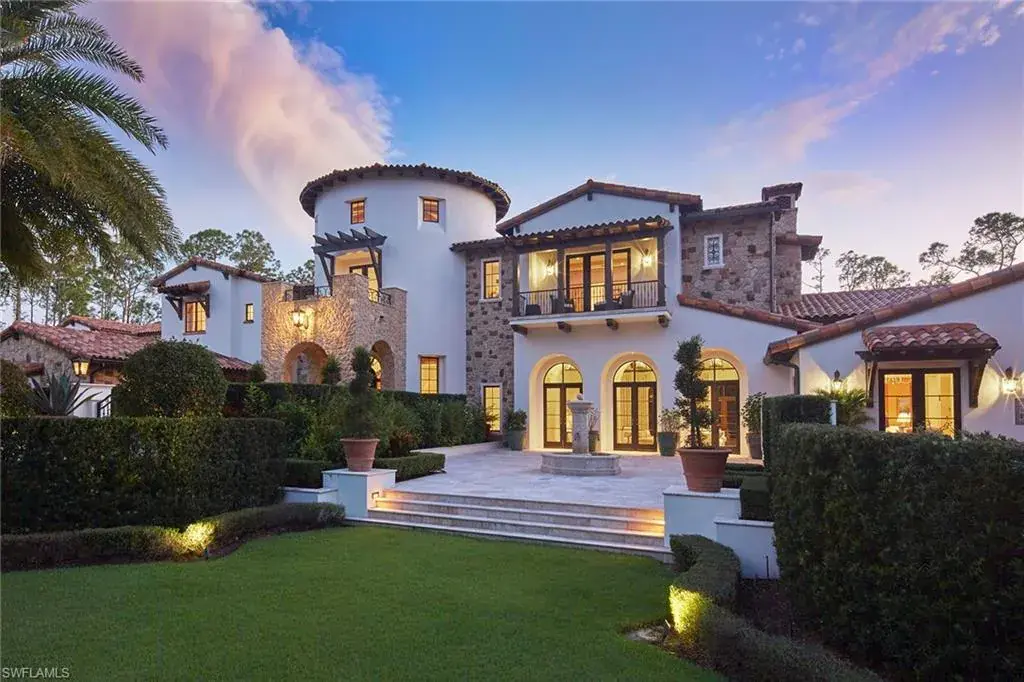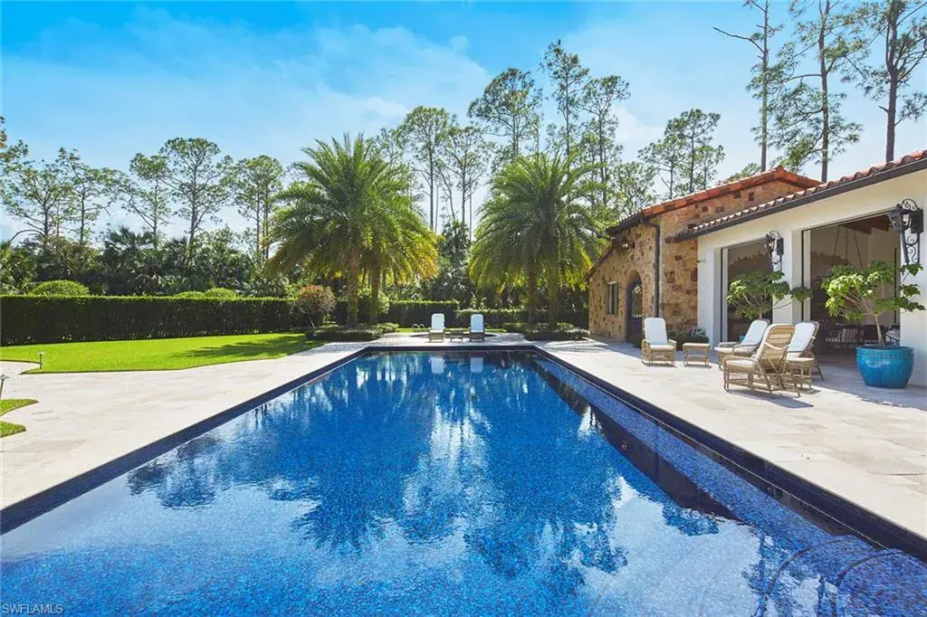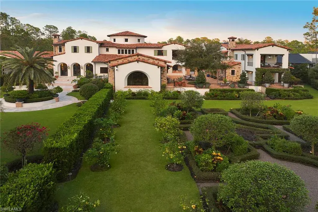Welcome to 28970 Il Cuore Court, a masterpiece in the prestigious Mediterra Golf Club community. Crafted by London Bay Homes in 2017, this Italian Tuscan-inspired estate spans nearly two acres, surrounded by a serene 50-acre preserve, offering unmatched privacy and tranquility. This magnificent estate offers immediate Mediterra golf membership eligibility and consists of a main house, guest house and pool pavilion. No detail has been overlooked. From the moment you enter the two-story rotunda foyer, you are greeted by the grand staircase, subtle Venetian plaster walls and exquisite marble flooring. The custom kitchen is a chef’s dream with dual AGA ranges, English bespoke Smallbone cabinetry, Sub-Zero refrigerator and beverage drawers along with dual dishwashers and ample space to create that ideal holiday dinner. The kitchen opens to a spacious family room featuring a vaulted wood beam ceiling with views to an inviting central courtyard highlighted by reclaimed Chicago brick pavers overlooking stunning Italian gardens complete with a variety of citrus trees. Relax and entertain family and friends in the mild Naples climate at the separate pool pavilion featuring a pool bath, full kitchen, 54-inch Viking grill and covered great room area with automated screens and shutters opening to a mosaic-tiled pool, natural gas fire pit and 14-person spa. The detached guest house with full kitchen, living room and two bedrooms with en suites is ideal for out-of-town guests. The elegant main house also includes dual studies and a spacious primary suite with a private screened lanai. Additional features of this unparalleled estate include a 100-kilowatt generator capable of operating the entire property, four-car climate-controlled garage spaces and Crestron home automation. A world of luxury awaits you in the exclusive Mediterra community with two 18-hole Tom Fazio-designed golf courses, a full-service wellness and fitness center, and a magnificent recently refurbished beach club complete with a rooftop pool and waterfront dining on the white powdery sands of the Gulf of Mexico. Don’t miss your chance to own this extraordinary estate!