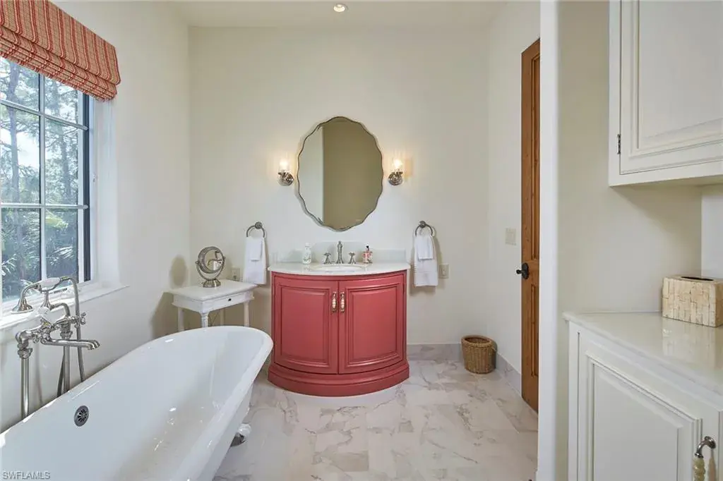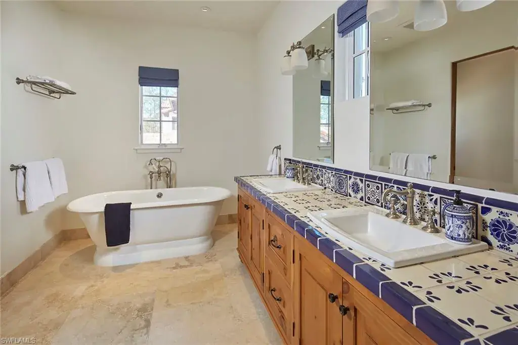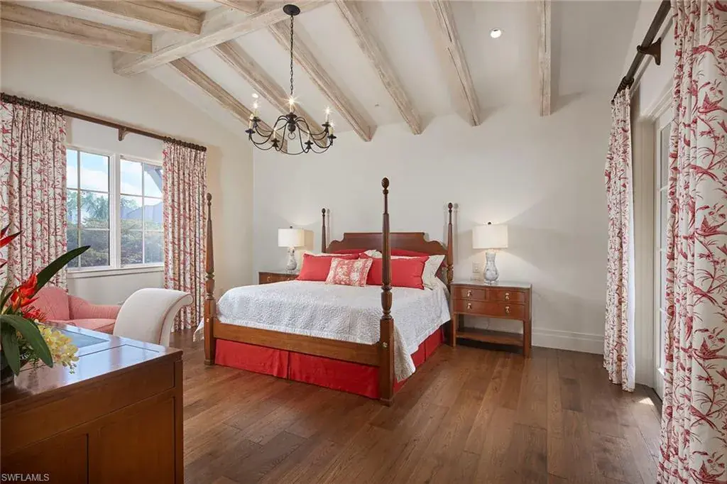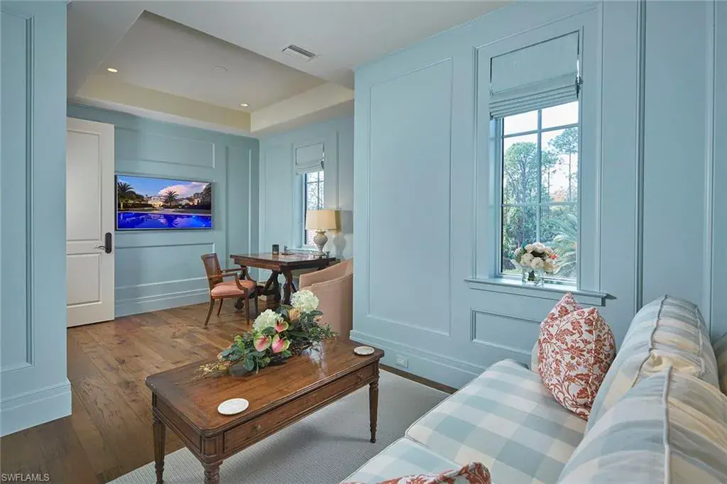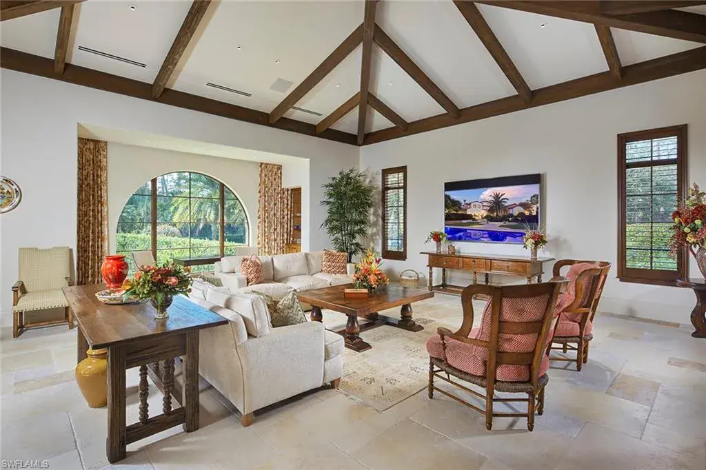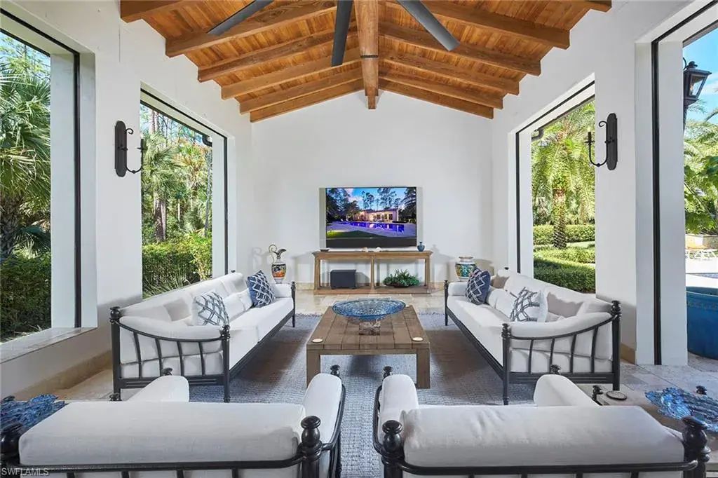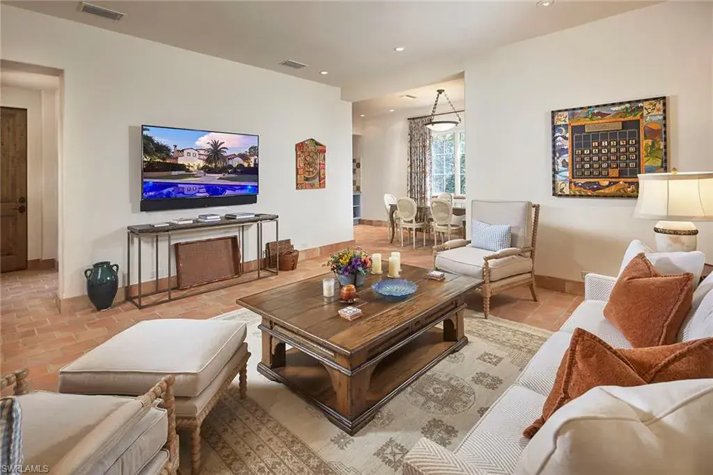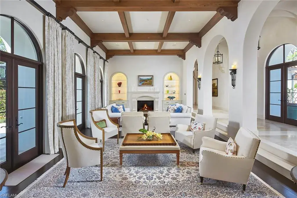 Welcome to 28970 Il Cuore Court, a masterpiece in the prestigious Mediterra Golf Club community. Crafted by London Bay Homes in 2017, this Italian Tuscan-inspired estate spans nearly two acres, surrounded by a serene 50-acre preserve, offering unmatched privacy and tranquility. This magnificent estate offers immediate Mediterra golf membership eligibility and consists of a main house, guest house and pool pavilion. No detail has been overlooked. From the moment you enter the two-story rotunda foyer, you are greeted by the grand staircase, subtle Venetian plaster walls and exquisite marble flooring. The custom kitchen is a chef’s dream with dual AGA ranges, English bespoke Smallbone cabinetry, Sub-Zero refrigerator and beverage drawers along with dual dishwashers and ample space to create that ideal holiday dinner. The kitchen opens to a spacious family room featuring a vaulted wood beam ceiling with views to an inviting central courtyard highlighted by reclaimed Chicago brick pavers overlooking stunning Italian gardens complete with a variety of citrus trees. Relax and entertain family and friends in the mild Naples climate at the separate pool pavilion featuring a pool bath, full kitchen, 54-inch Viking grill and covered great room area with automated screens and shutters opening to a mosaic-tiled pool, natural gas fire pit and 14-person spa. The detached guest house with full kitchen, living room and two bedrooms with en suites is ideal for out-of-town guests. The elegant main house also includes dual studies and a spacious primary suite with a private screened lanai. Additional features of this unparalleled estate include a 100-kilowatt generator capable of operating the entire property, four-car climate-controlled garage spaces and Crestron home automation. A world of luxury awaits you in the exclusive Mediterra community with two 18-hole Tom Fazio-designed golf courses, a full-service wellness and fitness center, and a magnificent recently refurbished beach club complete with a rooftop pool and waterfront dining on the white powdery sands of the Gulf of Mexico. Don’t miss your chance to own this extraordinary estate!