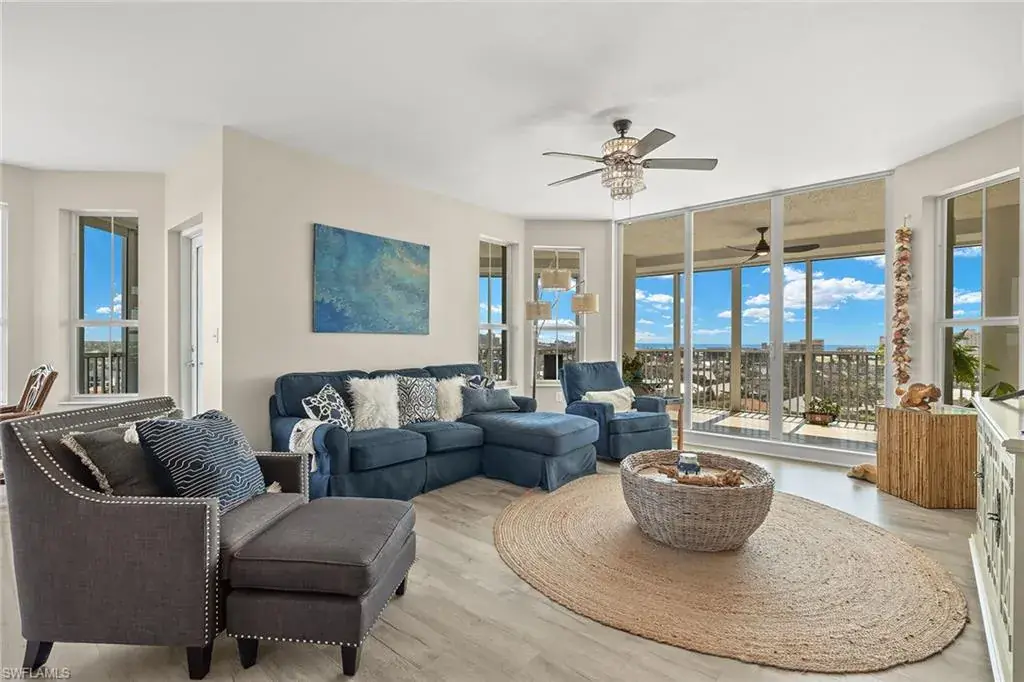 Location, location, location! Introducing luxury coastal living in the highly sought-after resort-style Dunes community in sunny Naples. This condominium is along the beautiful waters of Turkey Bay and the Gulf of Mexico where the design is complemented by breathtaking scenery and gorgeous tropical views. This ninth-floor end unit is just a short distance to Vanderbilt Beach and Delnor-Wiggins State Park. The resort’s luxury amenities are just steps from the front door. Featuring a spacious floor plan with three bedrooms, three baths, over 2,700 square feet of total area, huge wraparound balcony ideal for entertaining and enjoying panoramic views of blue waters and lush landscaping. The interior offers a flowing floor design, white kitchen cabinets, solid surface counters, stainless steel appliances, COREtec floors, southwestern exposure with all-natural light, a wall of large windows, two balconies, a spacious primary bedroom with two walk-in closets and generous in-size primary bath. The 12-story luxury tower is in the Island Cove neighborhood of The Dunes of Naples. Antigua was constructed in 2001 and is the closest residence to the beach and is close to all The Club’s amenities of the Dunes. Antigua residences offer a unique and pleasurable living experience with a newly renovated lobby, clean and bright under-building parking, climate-controlled storage units, heated pool, spa, outdoor grills and wide views of the surrounding nature preserve. The club was awarded the prestigious Sand Dollar trophy for its recent multimillion-dollar renovation and residents enjoy its fine-dining restaurant, tiki bar, resort pool, huge fitness center, tennis courts, guest suites and more. This subdivision is pet friendly and investor’s delight with seasonal rentals reaching $15,000 per month. The Dunes is conveniently located near Naples’ hotspots such as Mercato, Waterside, 5th Avenue and world-class beautiful white sandy beaches.