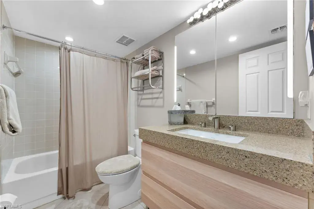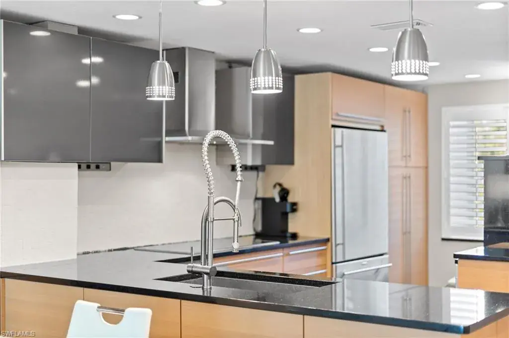 Stunning, custom kitchen that will not be seen in any other unit. The unit is being offered “turnkey” and is ready to move in to. High-end cooktop, convection oven, dishwasher, and a new microwave. There is a 360 pantry that has tremendous storage space. New A/C, hot water tank, and a Home Shield policy is in place that can be transferred to the new owner. Hurricane windows in the kitchen, bedrooms, and lanai sliding glass doors. New plantation shutters and most of the furniture is new. It is an open floor plan condo that has been nicely updated with LED lighting and new wood ceiling fans. Spacious laundry room has additional storage space. The location of this development is excellent and close to 5th Avenue South, entertainment, shopping, and the beaches. The community has two swimming pools and a community club house. Boat docks are available for lease or purchase. This is a must see condo that is ready for your enjoyment.