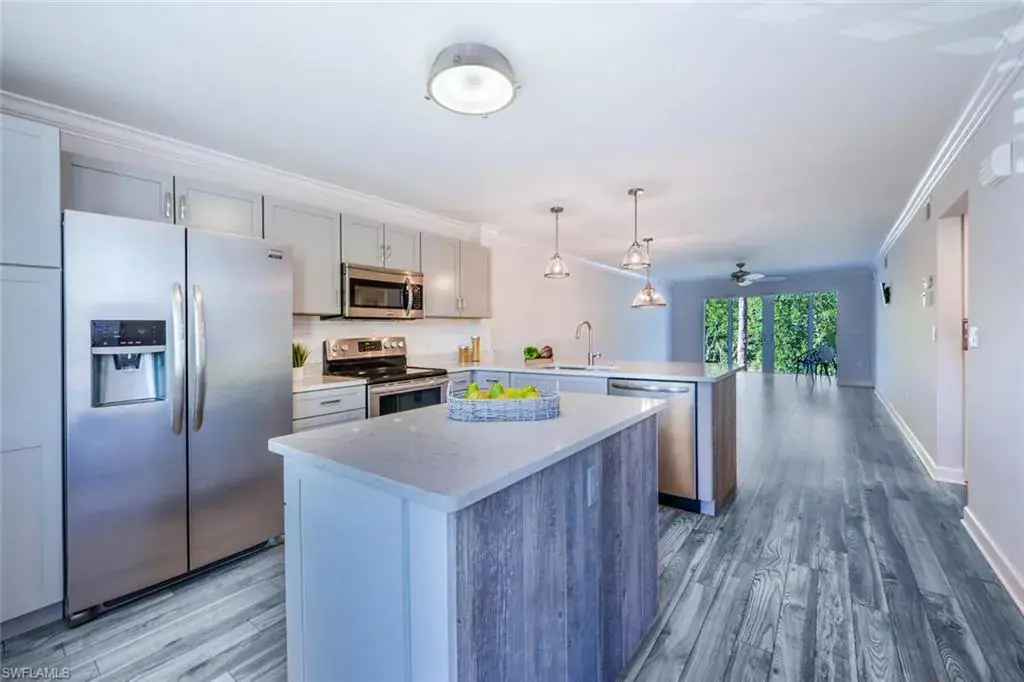 Are you able to recognize a great deal when you see it? Don’t Miss This One! Impeccable and Move-In Ready! If you are looking for a Naples Pied A Terre or an Overflow Guest Home, this might be it! Completely remodeled with quality finishes throughout, this End-Unit condo has lots of natural light and offers an open floor plan, 2 bedrooms, 2 bathrooms, an enclosed lanai with a tranquil preserve view and a spacious laundry room with extra storage. The kitchen features a breakfast bar, center island, quartz counter tops, tiled backsplash, stainless steel Frigidaire Gallery appliances, 5 burner range, double sink and new wood “Merillat Masterpiece Cabinetry” with soft closed, convenient pull-out drawers in pantry and waste and recycle bins. The owner’s and guest’s bathrooms have been updated with spacious showers, quality glass shower doors, new wood vanities with three drawers, soft close cabinets and quartz countertops and the owner’s bedroom offers a spacious walk-in closet. Other upgrades include modern tile in bathrooms and showers and engineered laminate flooring, crown moldings, IMPACT RESISTANT WINDOWS & SLIDERS, automatic slider shades on remote, plantation shutters on all windows, fans and lights, TV brackets already installed in living room and bedrooms. This 1st floor condo is a corner unit with parking right in front of the unit and is located just steps to the BBQ area and one of the two heated community pools, just a short walk to the club house, main pool and boat docks. Enjoy living in a tranquil community located 5 min to Historic Olde Naples offering activities, events, superb dining and shopping, Naples Pier, renown white sandy beaches and nearby the newly developed 15-acre Baker Park offering outdoor fitness, sunrise terrace, bike paths, 1.3-mile trail with view of the Gordon River, pedestrian bridge, splash pads and more!