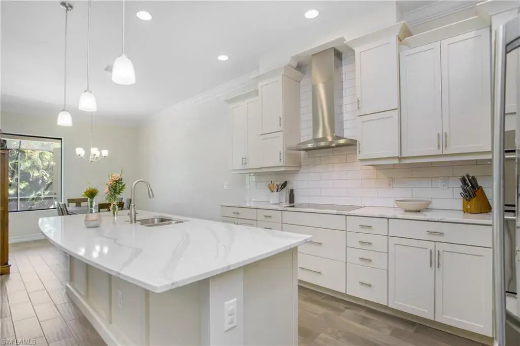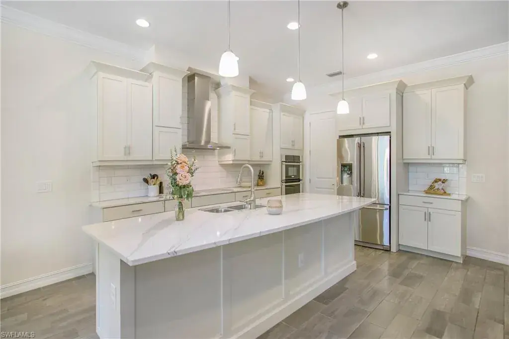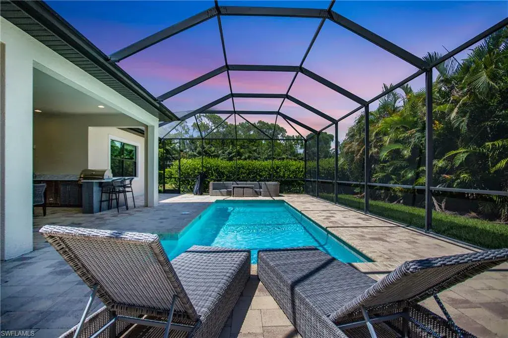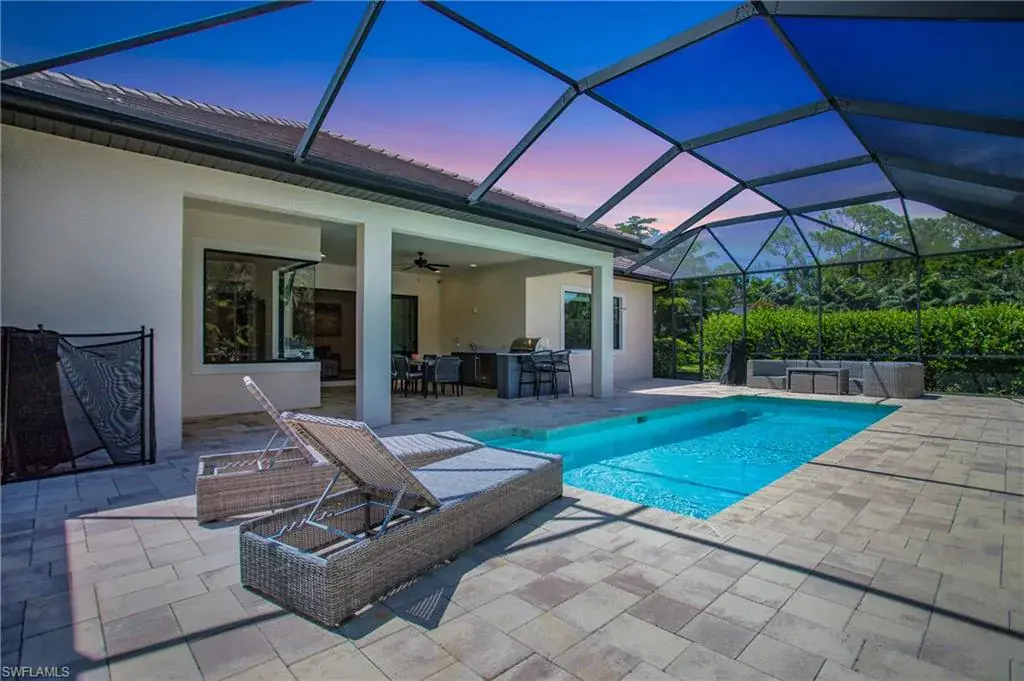 This superb modern home is located in a gated private enclave of only 16 homes, offering privacy and security. It is conveniently located just 4 miles from the beach, 5 miles from shopping and dining, and 6 miles from downtown Naples. Built in 2017, this home features 3 bedrooms plus a den, providing ample space for comfortable living. With 3 full baths, an additional powder room, and a convenient pool bath, all your needs will be met. One of the rare highlights of this property is its 3-car garage, offering both storage space and convenience. The kitchen is equipped with sleek and modern stainless-steel appliances, complementing the custom design and quartz countertops. Elegant tile flooring throughout seamlessly ties the spaces together, adding a touch of luxury. For those who love to entertain, the outdoor kitchen is a true delight. The pool adds another level of luxury and relaxation. The attention to detail in this home is evident, with double crown molding and tray ceilings adding an extra layer of sophistication. Lastly, the impact glass throughout the home ensures both safety and peace of mind. This home offers a complete package of comfort, luxury, and practicality.