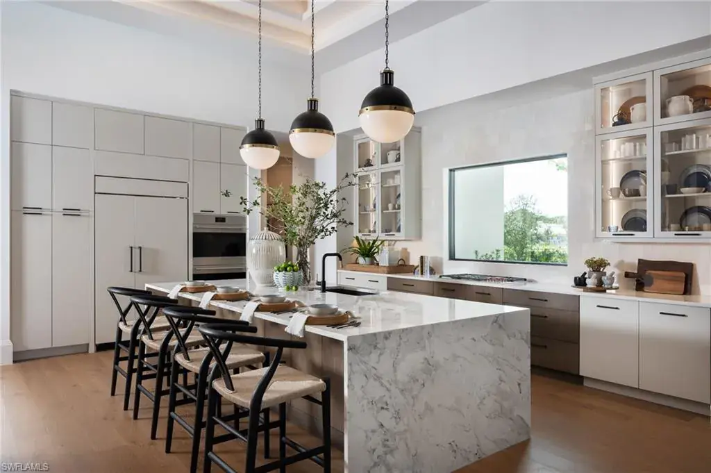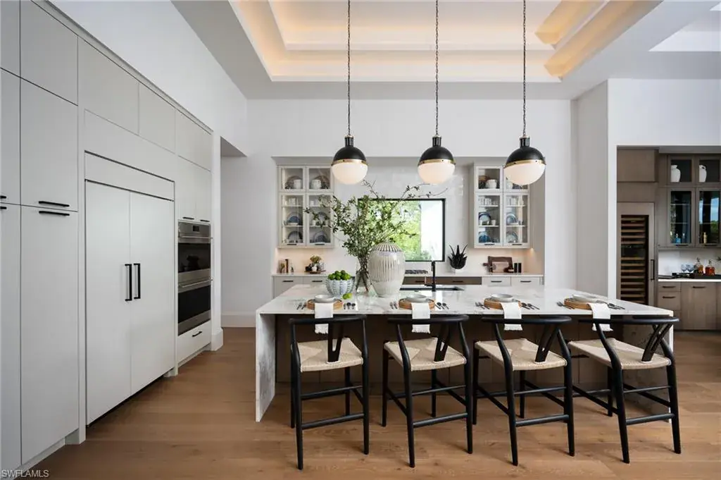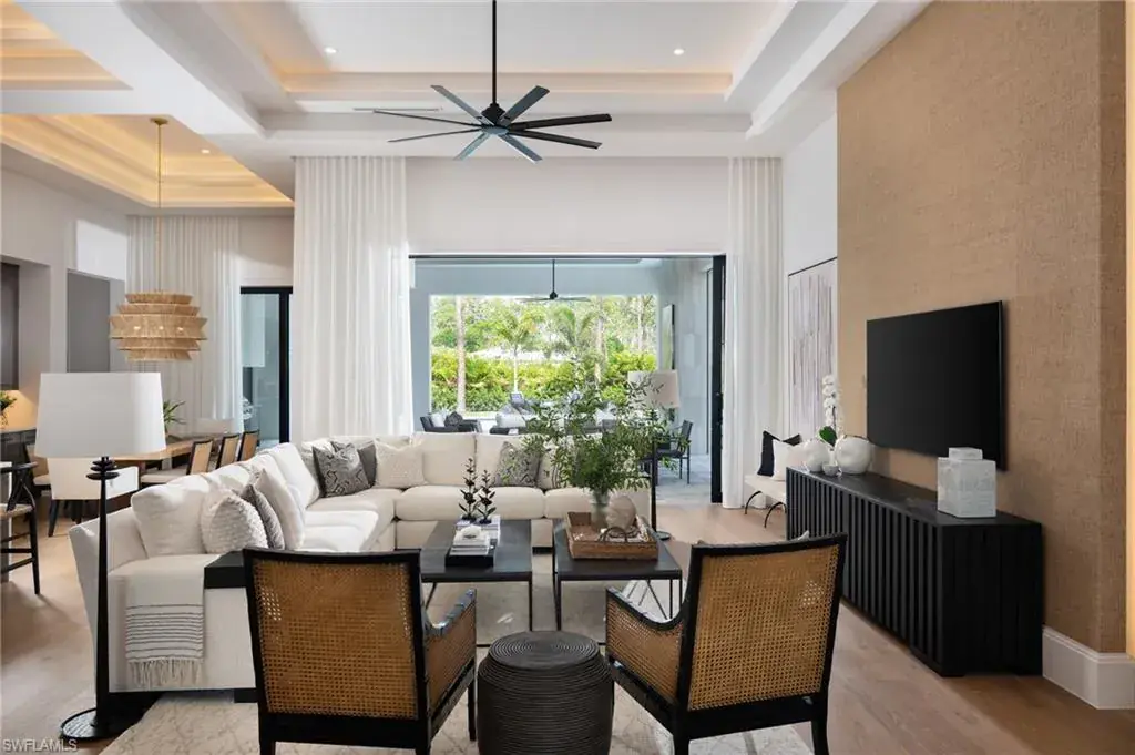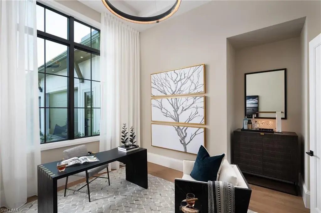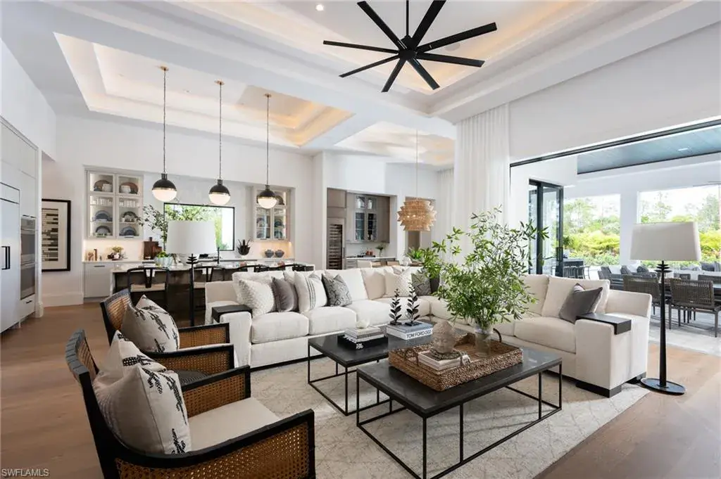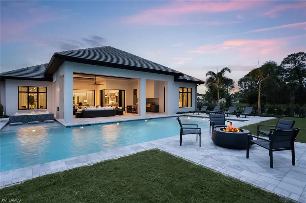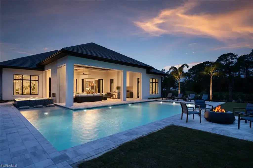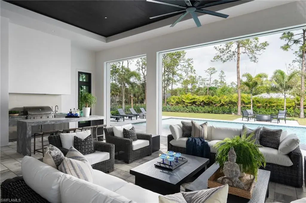 DESIGNER FURNISHED AND MOVE-IN READY HOME AVAILABLE NOW! Seagate Development Group and Theory Design present the professionally designed and furnished Tortola Model Custom Home in Silver Oak, one of Seagate’s newest, luxury communities in Naples. This custom home is a collaboration between Seagate Development Group and Theory Design with Architecture by RG Designs, and custom landscape & hardscape design by Outside Productions. Silver Oak, developed by Seagate Development Group, offers exclusive living on 10 expansive Estate homesites, each spanning 1.25 acres. With no homeowner’s association, residents have the freedom to customize their homes and enjoy a superior standard of living. Enjoy a modern design with natural textures and a soft color palette with European Oak floors throughout and stepped cove lit ceiling details. The Tortola model features four bedrooms, a study, four full and two half baths, and an oversized four-car garage. The spacious outdoor living area is accentuated with a private bocce ball court, fire pit, oversized pool with infinity spa, and plenty of yard space. The outdoor living area also features electric roll down screens, tongue and groove stained ceiling, outdoor kitchen, stone fireplace, pool bath and lush landscaping. The gourmet kitchen includes two tone stacked cabinetry, with lit glass cabinets, full height backsplash, under cabinet lighting, island with waterfall countertop, paneled Sub Zero/Wolf appliance package, walk-in pantry, oversized window providing plenty of natural lighting. The dining area includes a bar with an ice maker and a full height wine refrigerator and zero corner pocket sliding glass door. The master suite features a sitting area with glass door leading to the covered lanai. The master bathroom features honed marble floors and comes equipped with Kohler plumbing fixtures including 2 private water closets, dual vanities, soaking tub and a spacious shower with 3 showerheads. Additional luxury features include 7.48” European Oak wood floor throughout, custom built-in closets, 1 ¾” solid interior doors, Emtek door hardware, linear HVAC diffusers in common areas, level 5 drywall, double pane Andersen impact windows & doors, Control4 home automation system, sound system, spray foam insulation, custom iron front door, natural gas, lush landscaping, and interior designer selected custom light fixtures and furnishings. Seagate’s portfolio of companies specialize in custom homes, renovations, interior design, estate management, and land development. Together, bringing exceptional concierge levels of service to everything we do.