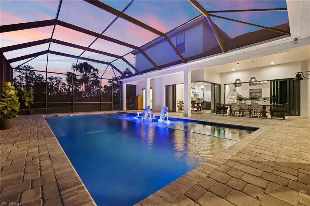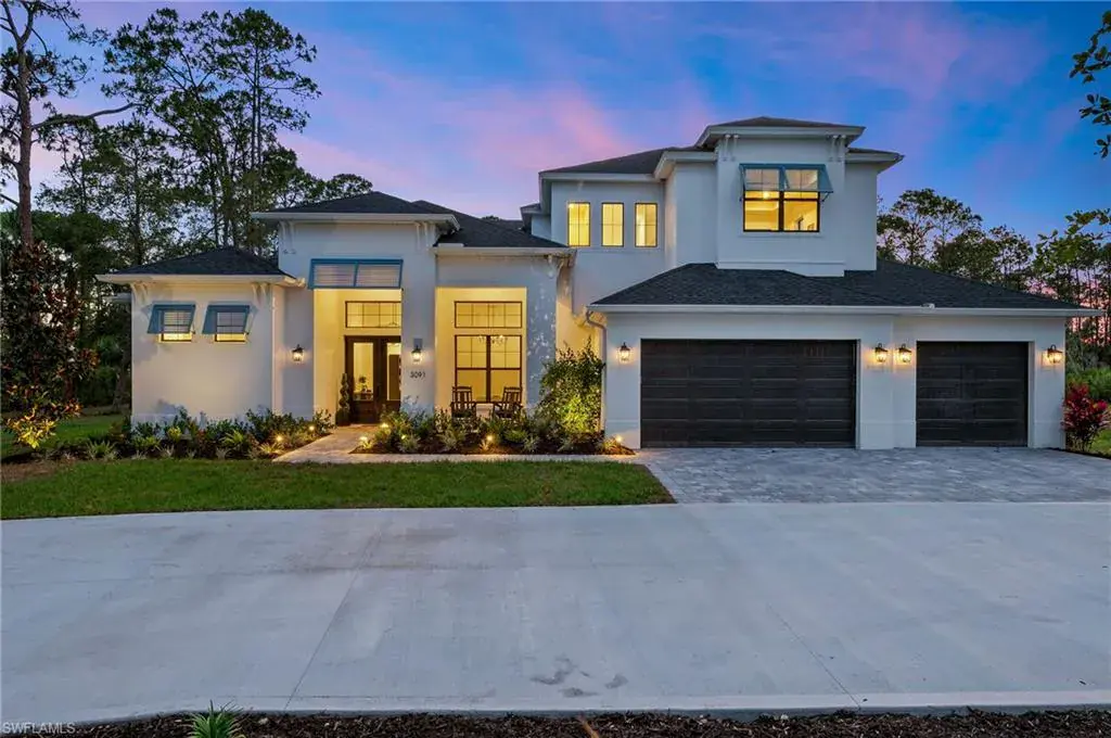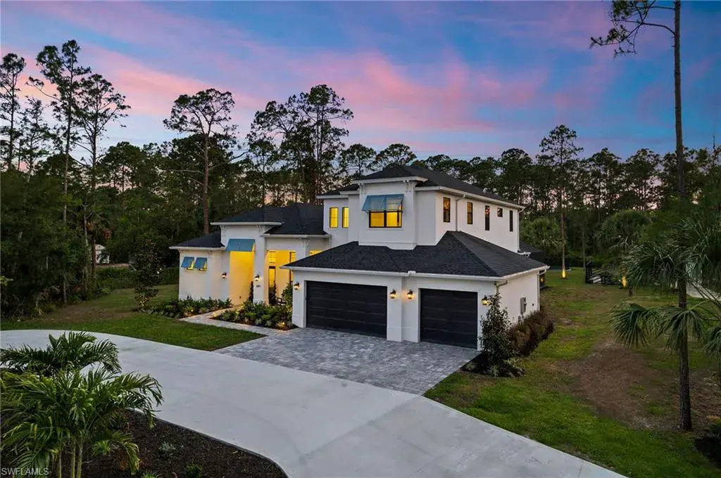 Rare find, the virtual tour is a must see! Beautiful custom built home that sits on 2.73 acres and features 3,775 sqft of under air living area! If you love the outdoors, this home is for you! A custom fenced in garden, fruit trees, kids play area, fire pit and an entertainers dream lanai awaits you. The home was built in 2020 and has 5 bedrooms + Den, 4 baths and an oversized 3 car garage. Not one detail was missed in this custom home. Drive up the newly concreted driveway to your circle drive and walk through the front door to 11 and 12ft ceilings throughout. This home showcases Impact resistant doors and windows, open floor plan, dry bar with built-in ice machine, GE café appliances, custom mudroom and pantry, pocket sliders, zero/corner door sliders, whole home RO system, 250 gallon buried propane tank and many more! The first floor master features two oversized walk-in closets and a custom closet for a safe. Walk into the master bathroom and you will find a custom shower featuring all marble tile, double sink vanity with marble countertops and a clawfoot tub. Walk upstairs to an oversized loft area and three bedrooms and two baths. Entertain outside in the 37ft long, center deep pool which features an oversized sun shelf and hot tub or relax in front of the outdoor fireplace. Now zoned for Gulf Coast High School! This is one of the hottest areas in Naples, schedule your showing today!